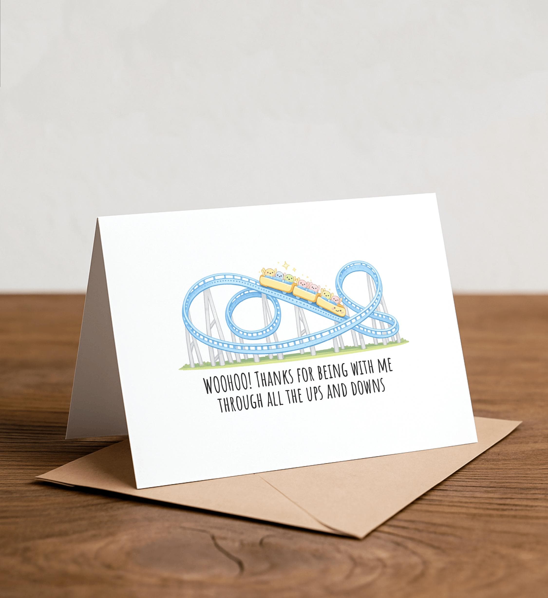 Thanks for being with me through the ups and downs - rollercoaster card, life is a rollercoaster, general thank you, appreciation card