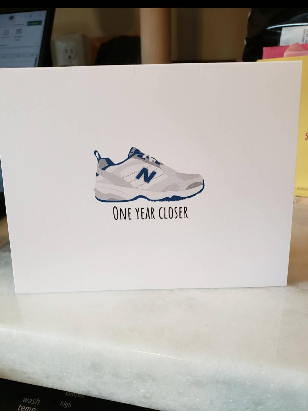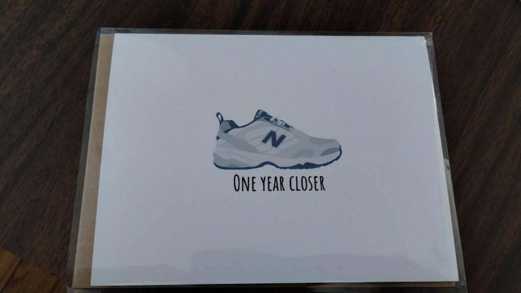 One Year Closer - New Balance Greeting Card, Funny Birthday Card, Dad joke card, Handmade Card, Punny Greeting Card, Dad shoes