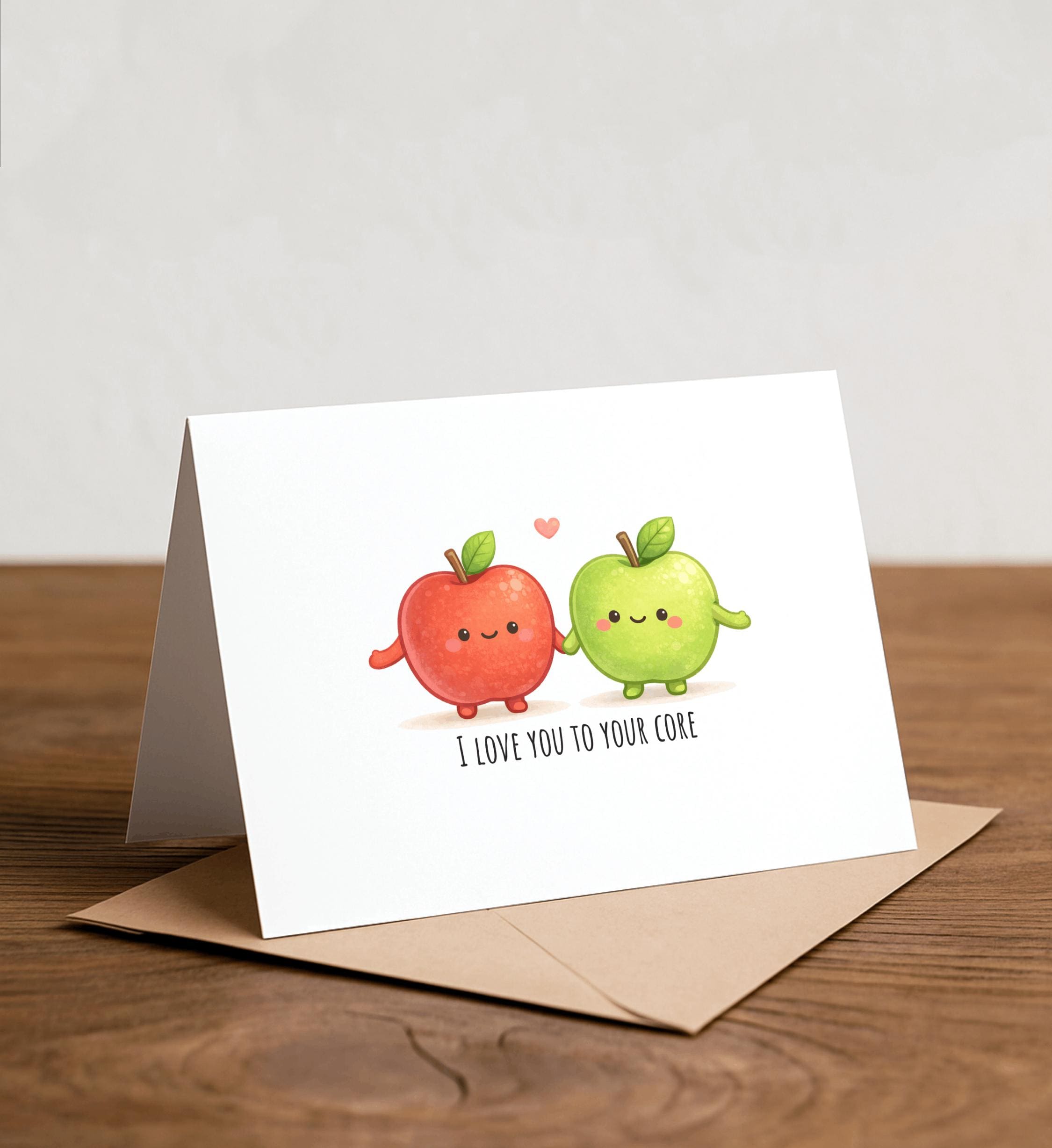 I love you to your CORE - Apple Greeting Card, Valentine's Day Card, Handmade Card, Foodie card, Pun, Fruit Card, Apples