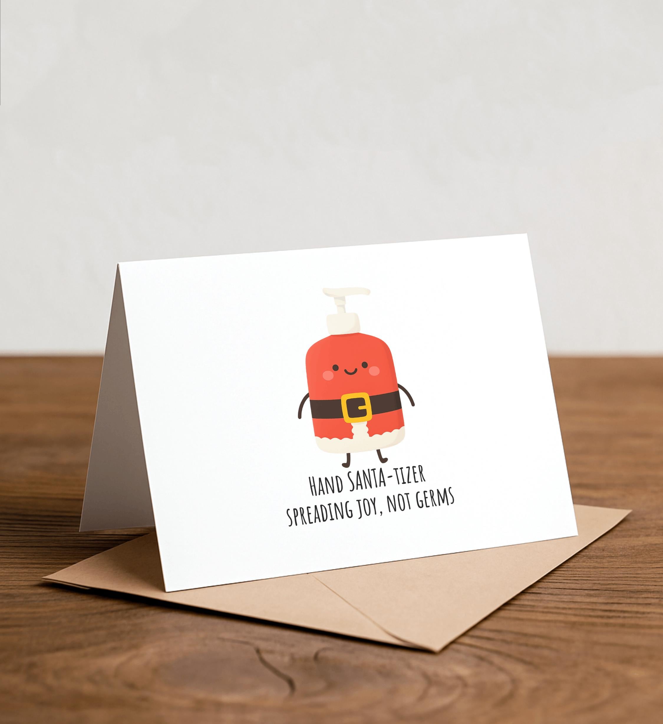 Hand SANTA-tizer - Cute Christmas Card, Funny Christmas Card, Simple Holiday Card, Punny Christmas, Spread Joy, Not germs, Covid, Sanitizer
