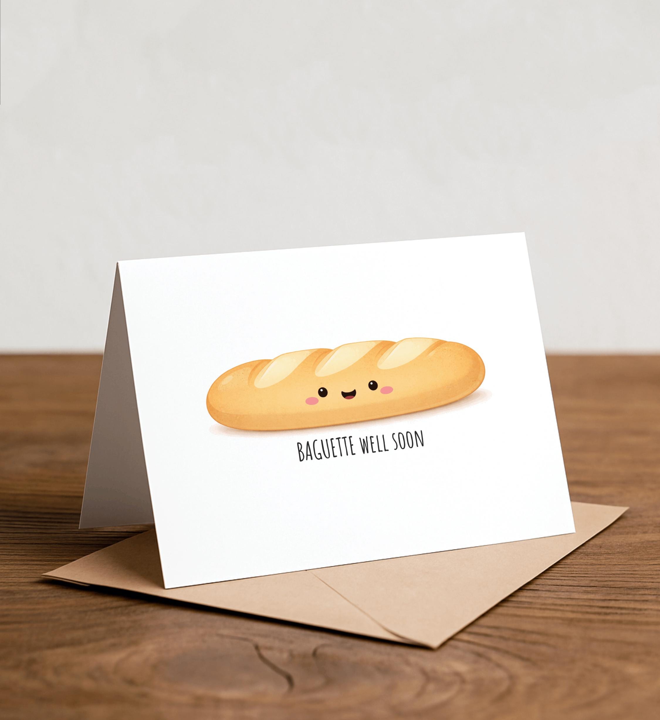 Baguette Get Well Soon Card - Handmade Condolence Card