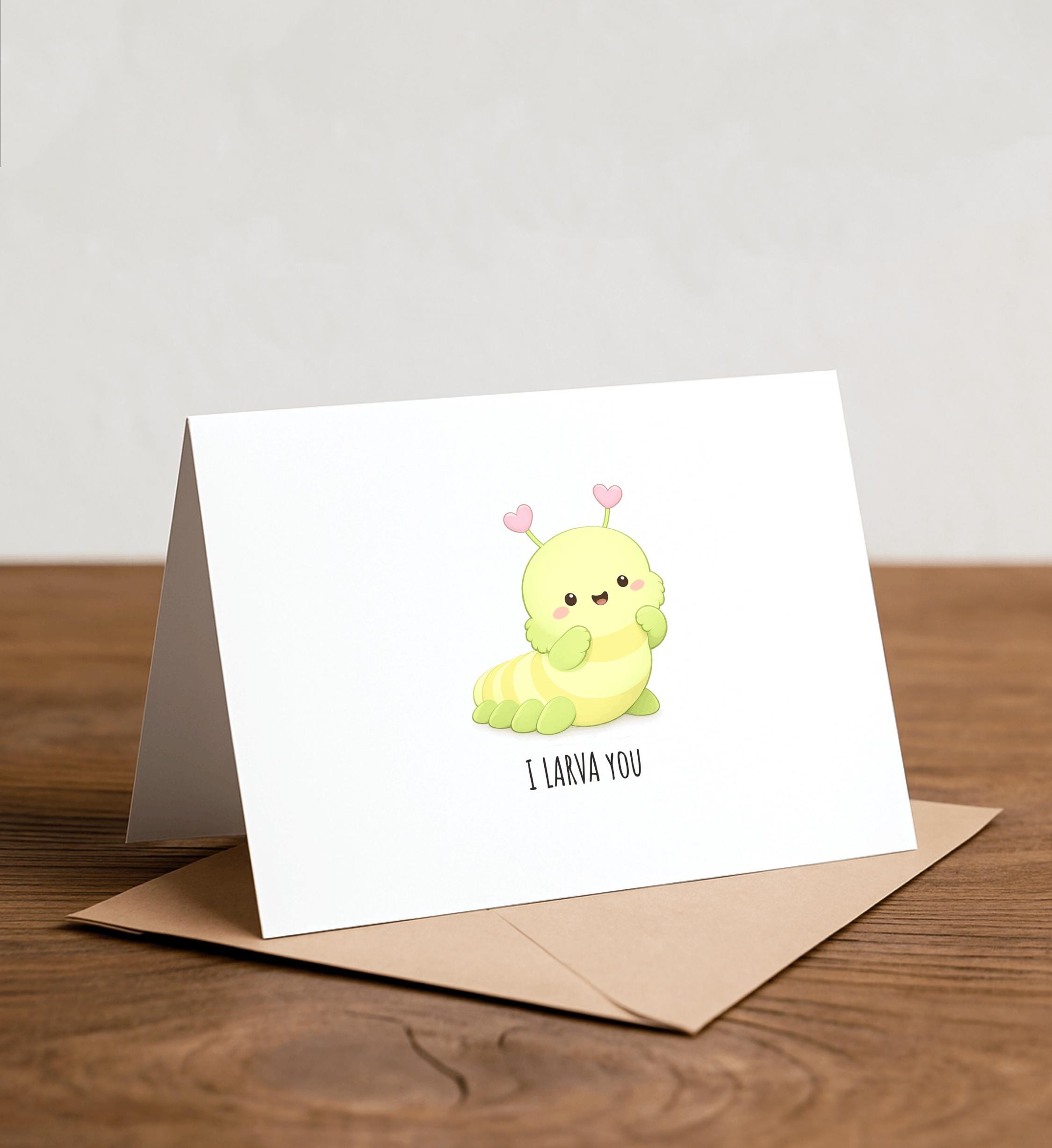 I LARVA You Greeting Card: Cheesy Pun Valentine, Thank You
