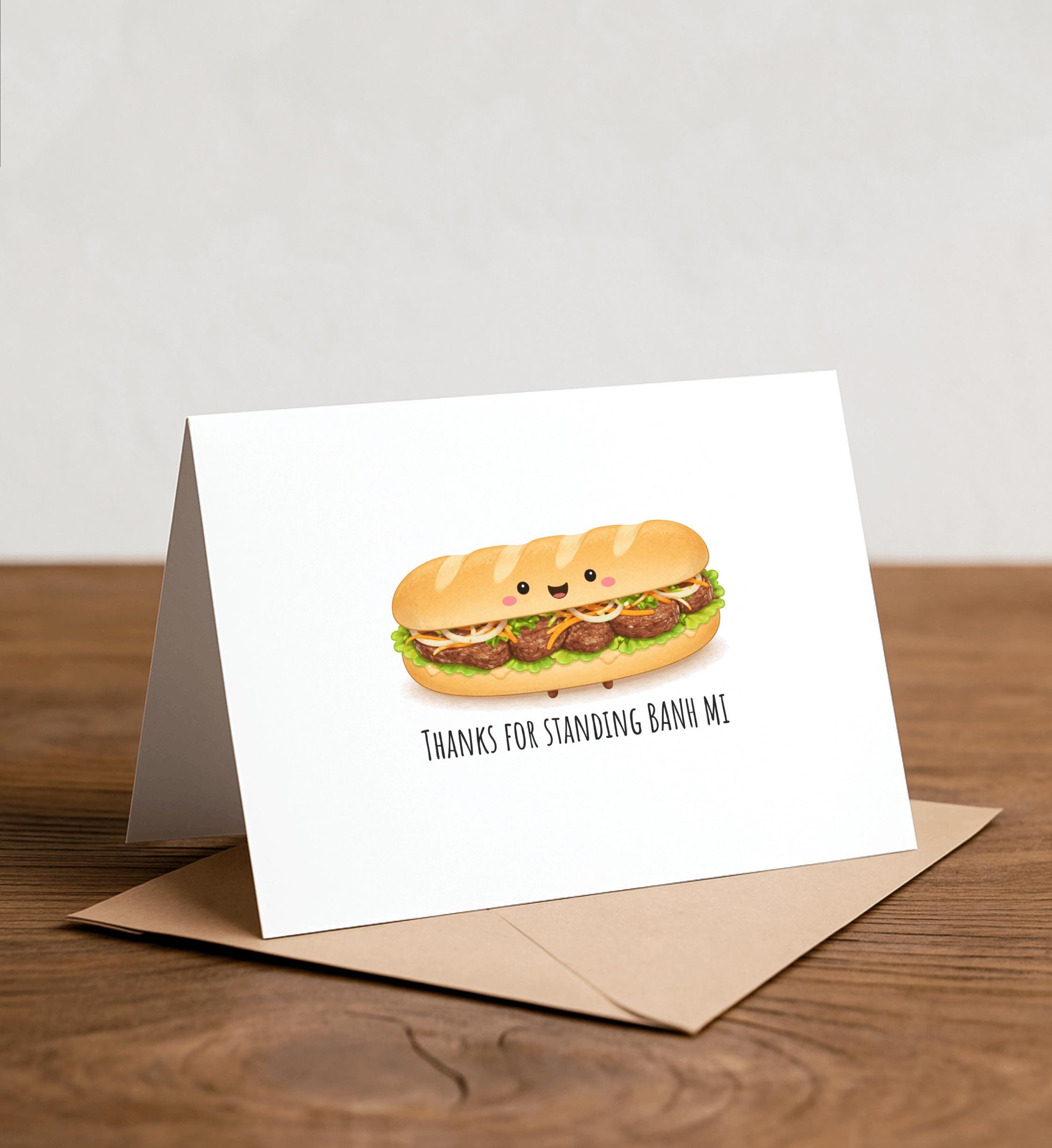 Thanks for standing BANH MI - Banh mi Greeting Card, postcard, valentine, Thank you card, punny card, banh mi, sandwich, Vietnamese food