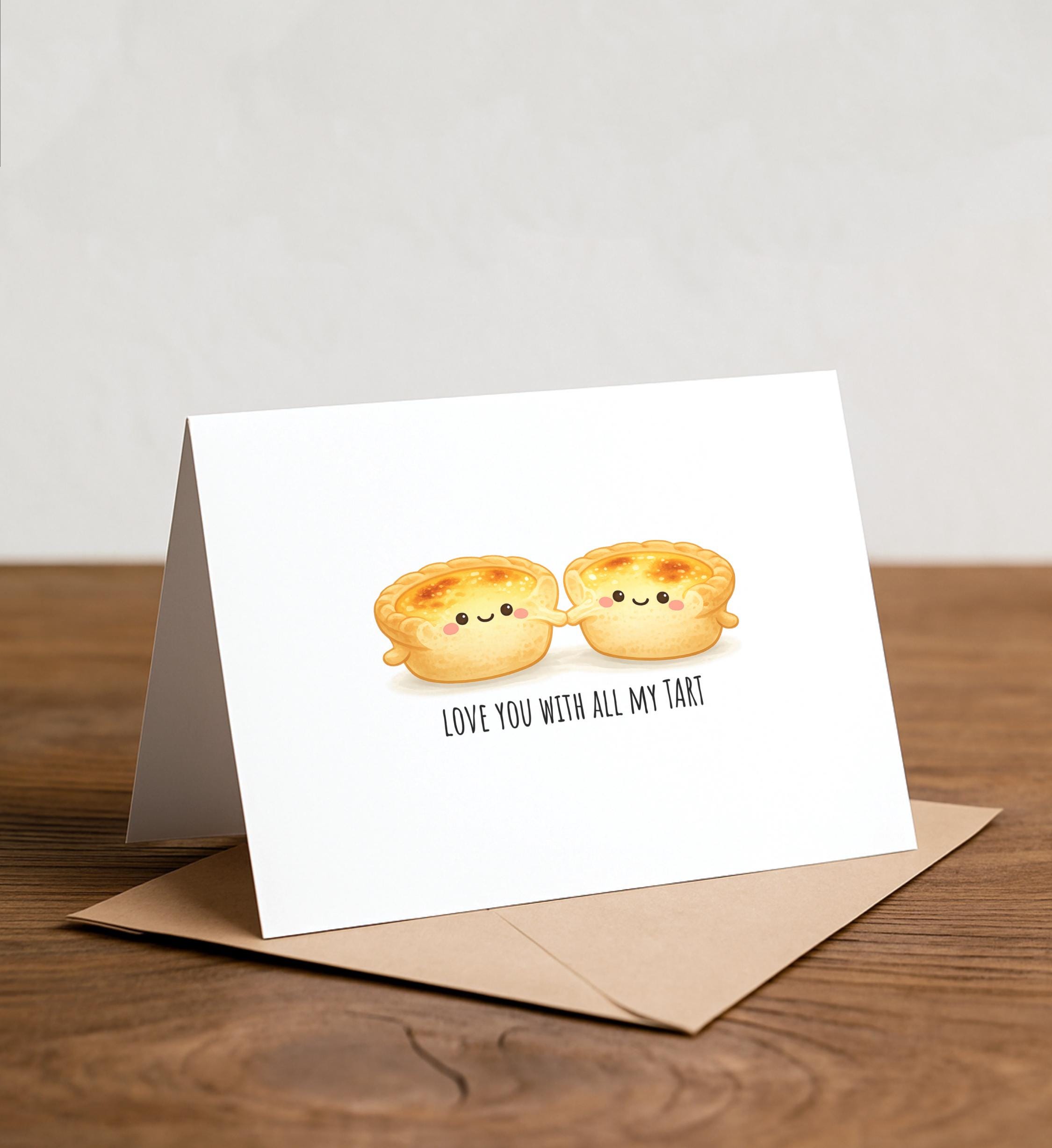 love you with all my TART - Egg Tart card, birthday card, card for boyfriend, couples card, Valentine, egg tart, lemon tart, pastry