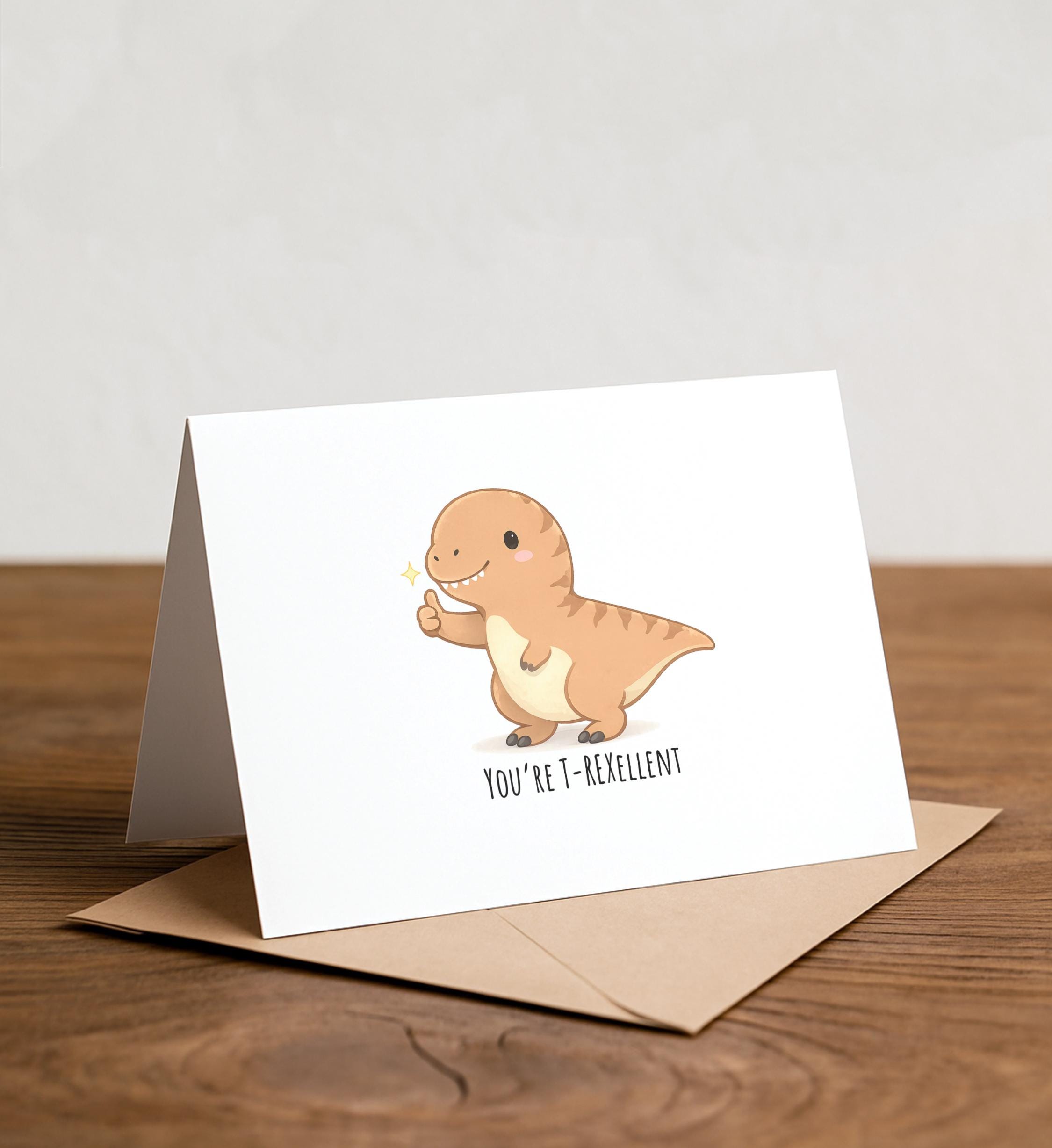 You're T-REXellent - T-Rex Greeting Card, Happy Card, Birthday Card, Pun Card, T-Rex, Dinosaur, Paleontology, Thank you, Excellent, Raptor