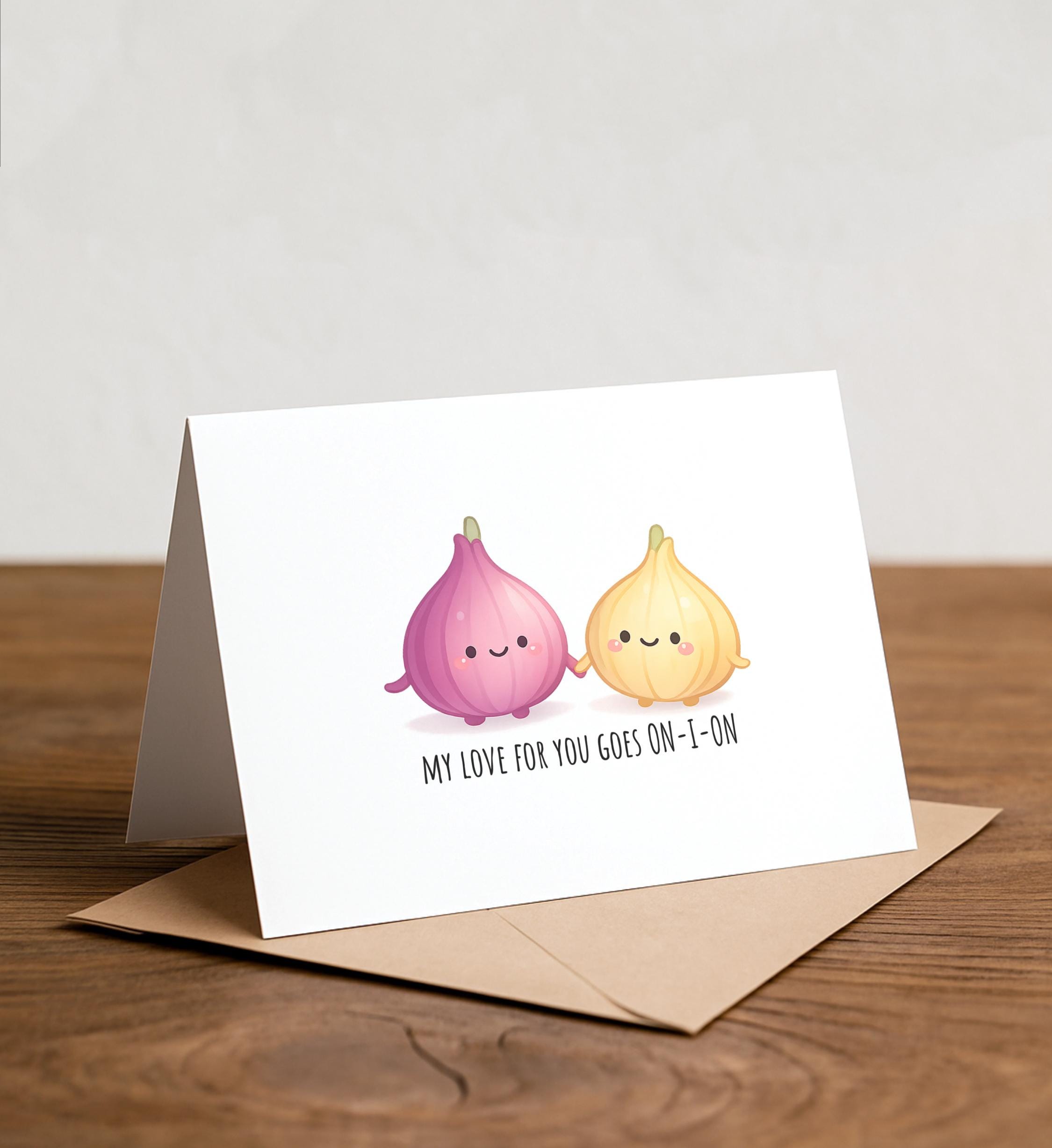 My love for you goes ONION - Onion Greeting Card, Happy Card, I Love You Card, Foodie card, Birthday Card, Onion, On and on, celine dion