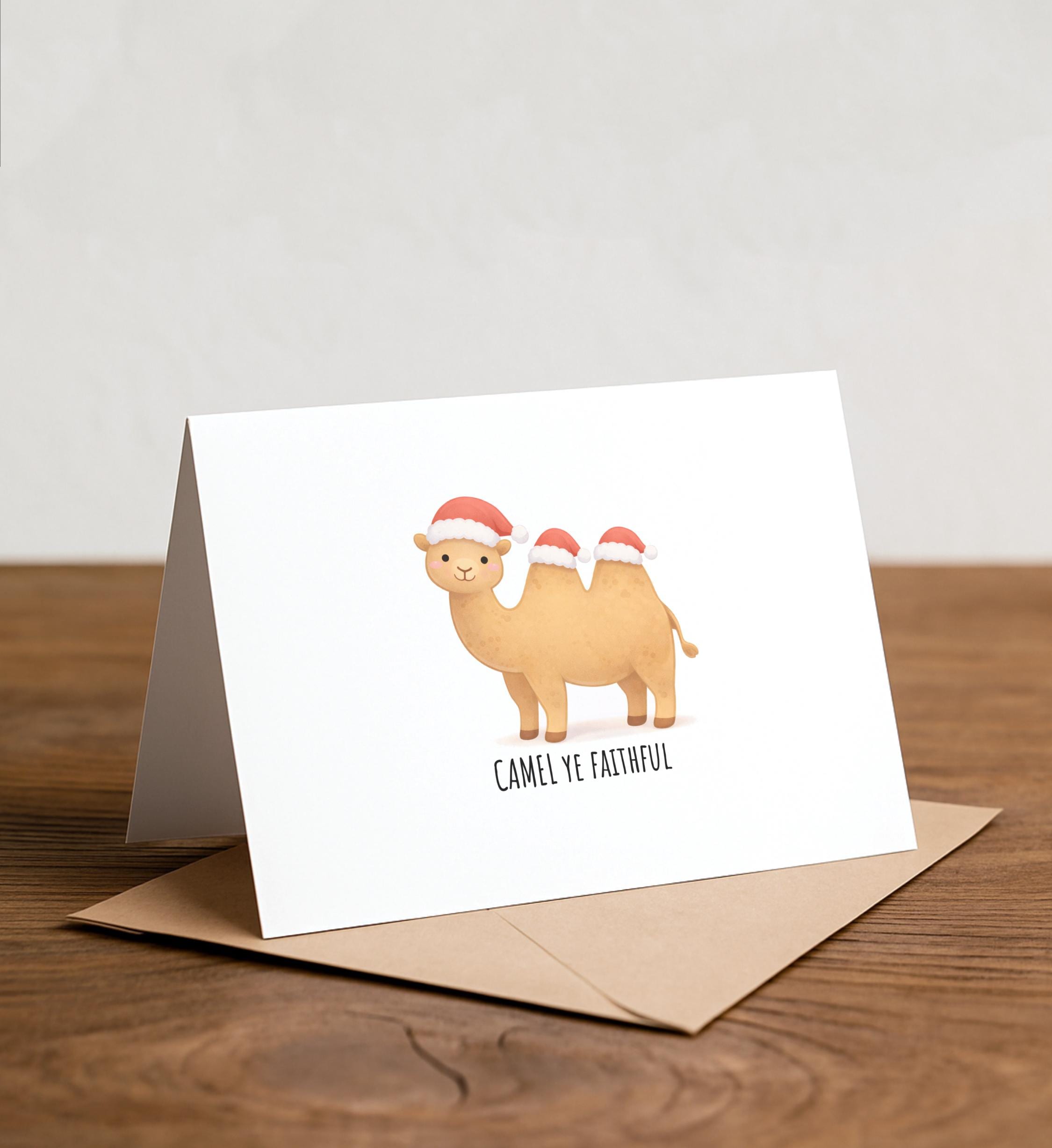 CAMEL ye faithful - Adult Christmas Card, Funny Christmas Card, Simple Holiday Card, Punny Christmas Card, Faithful, Christmas, Holiday pun