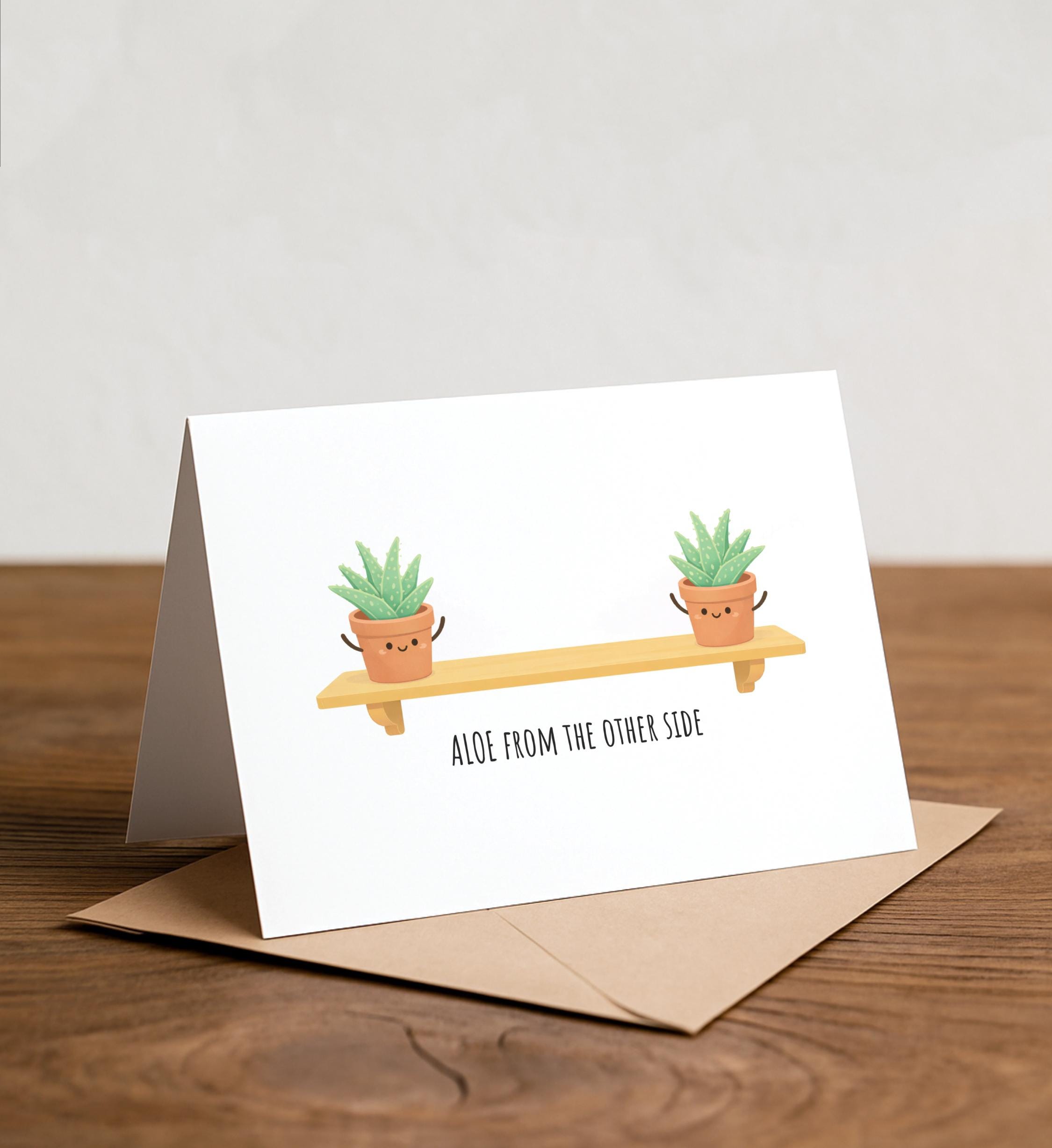 ALOE from the other side - Social distancing Greeting Card, Happy Card, I Love You Card, hello, greetings, aloe, adele, shelf, plant card