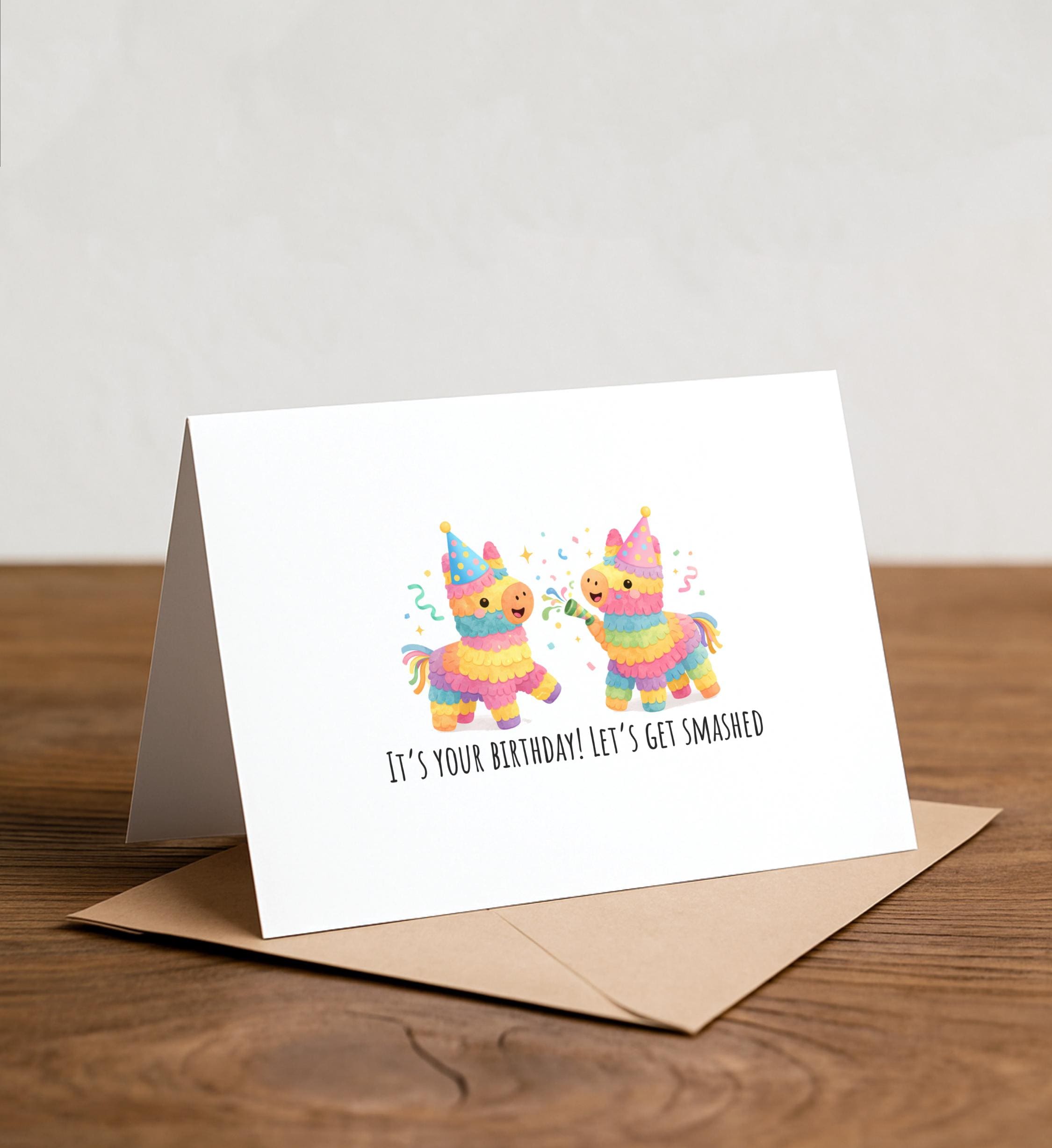 It's your BIRTHDAY! Let's get smashed - Pinata Birthday Greeting Card, Happy Birthday Card, Handmade Card, Funny, Drunk, Smashed, Pinata