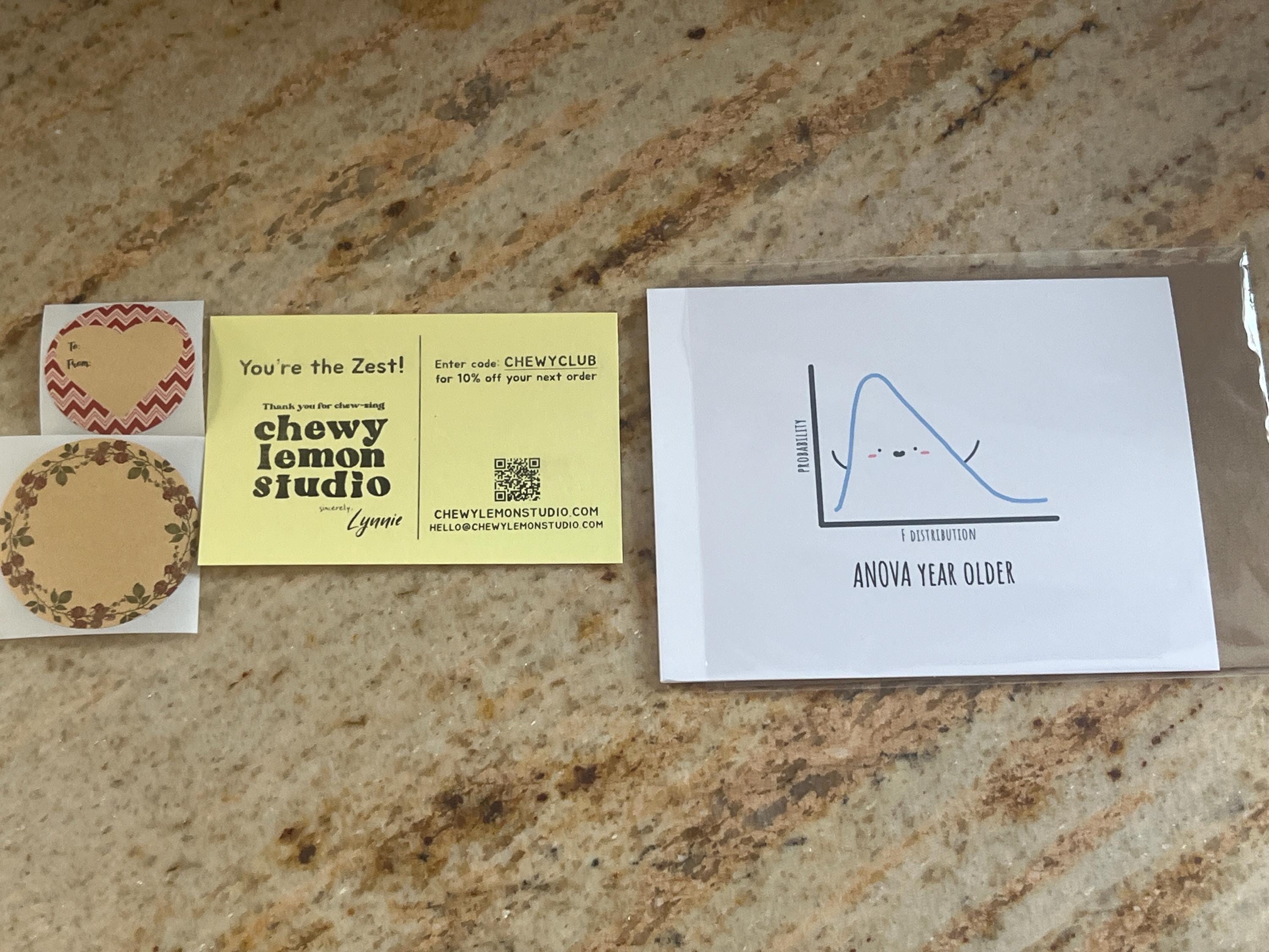 My mother loved it! This card is so cute and unique, even if you have to slightly mispronounce ANOVA to get it to sound right.