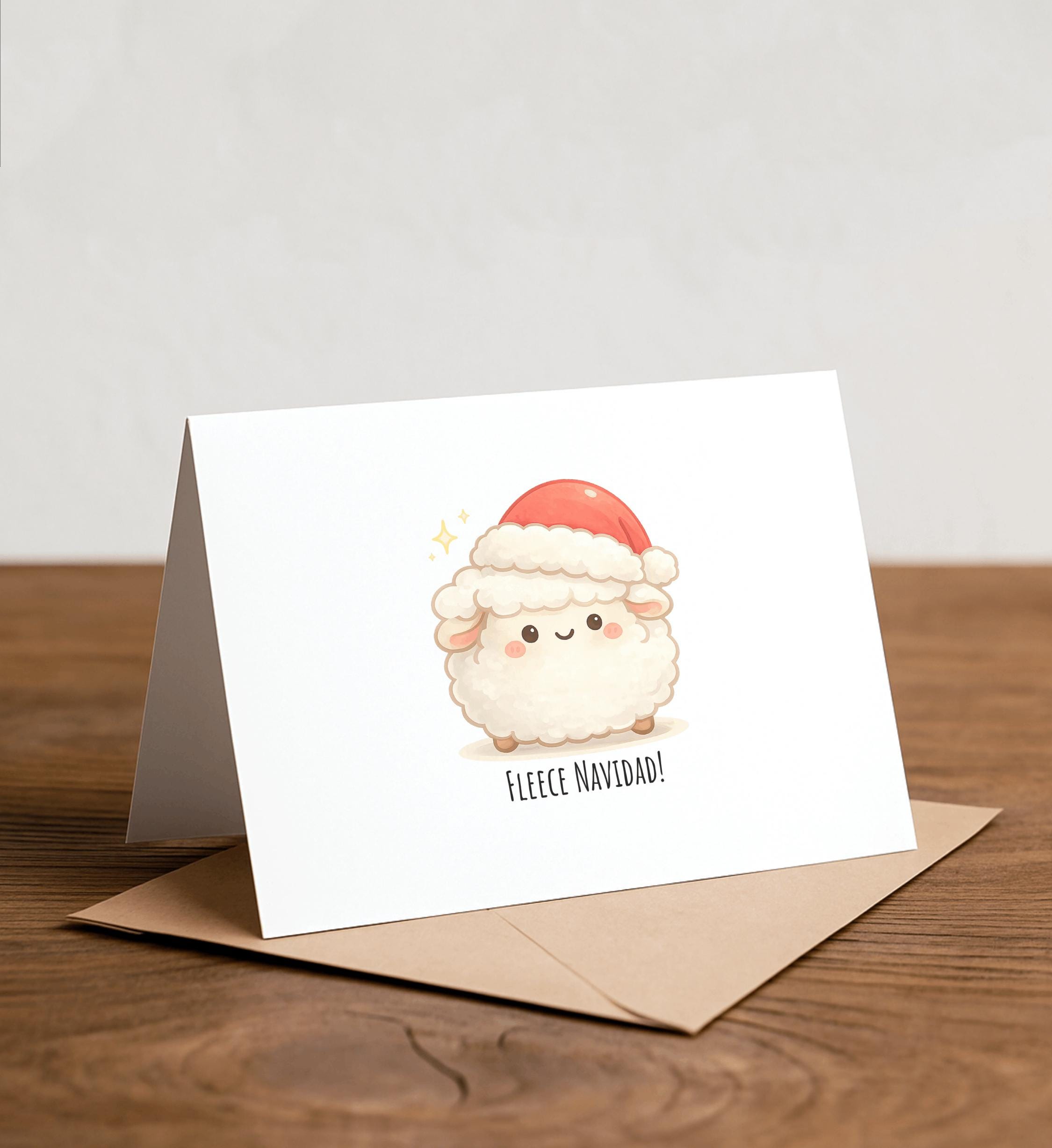 Fleece Navidad - Cute Christmas Card, Funny Christmas Card, Simple Holiday Card, Punny Christmas Card, Sheep, Ewe, Feliz Navidad, Christmas