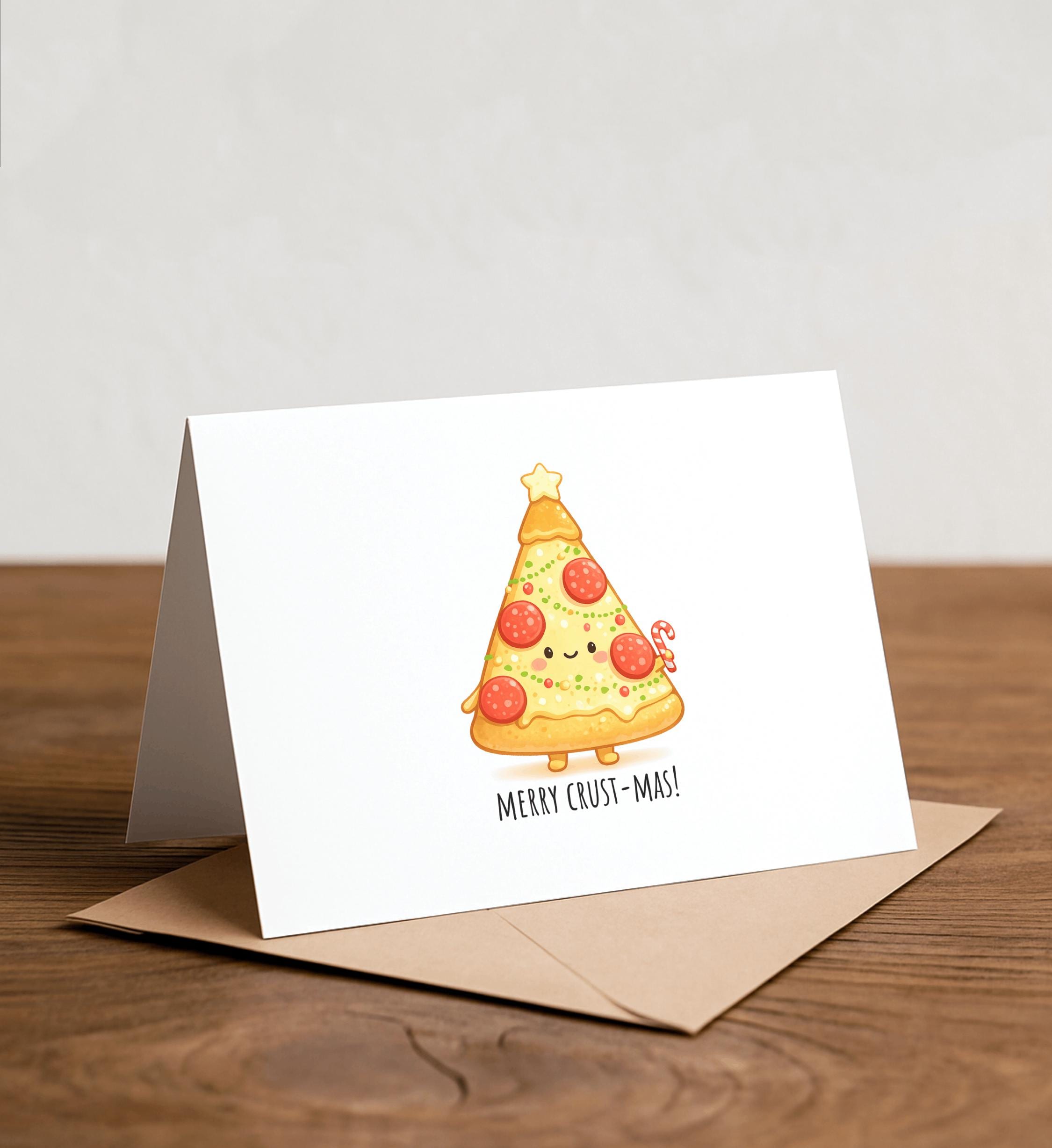Merry CRUST-mas - Cute Christmas Card, Funny Christmas Card, Simple Holiday Card, Punny Christmas, Pizza, Christmas food pun, pizza joke