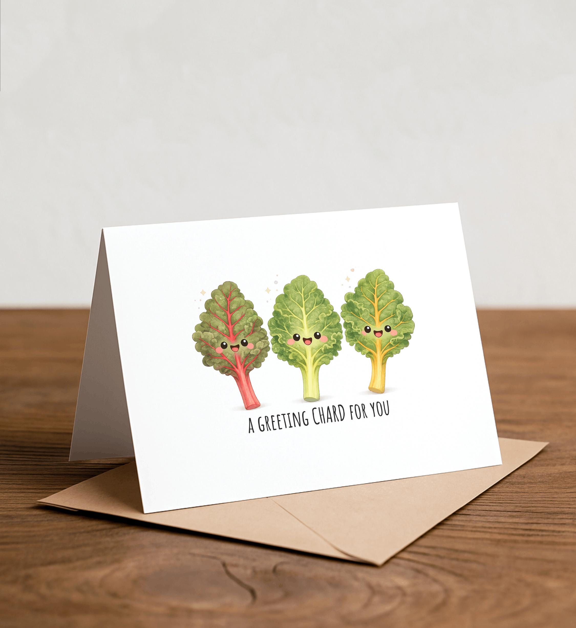 A Greeting CHARD - Chard Greeting Card, Happy Card, Love you, General Greetings, Graduation, Event, Funny Card, Pun, Veggie, Vegan, Greens