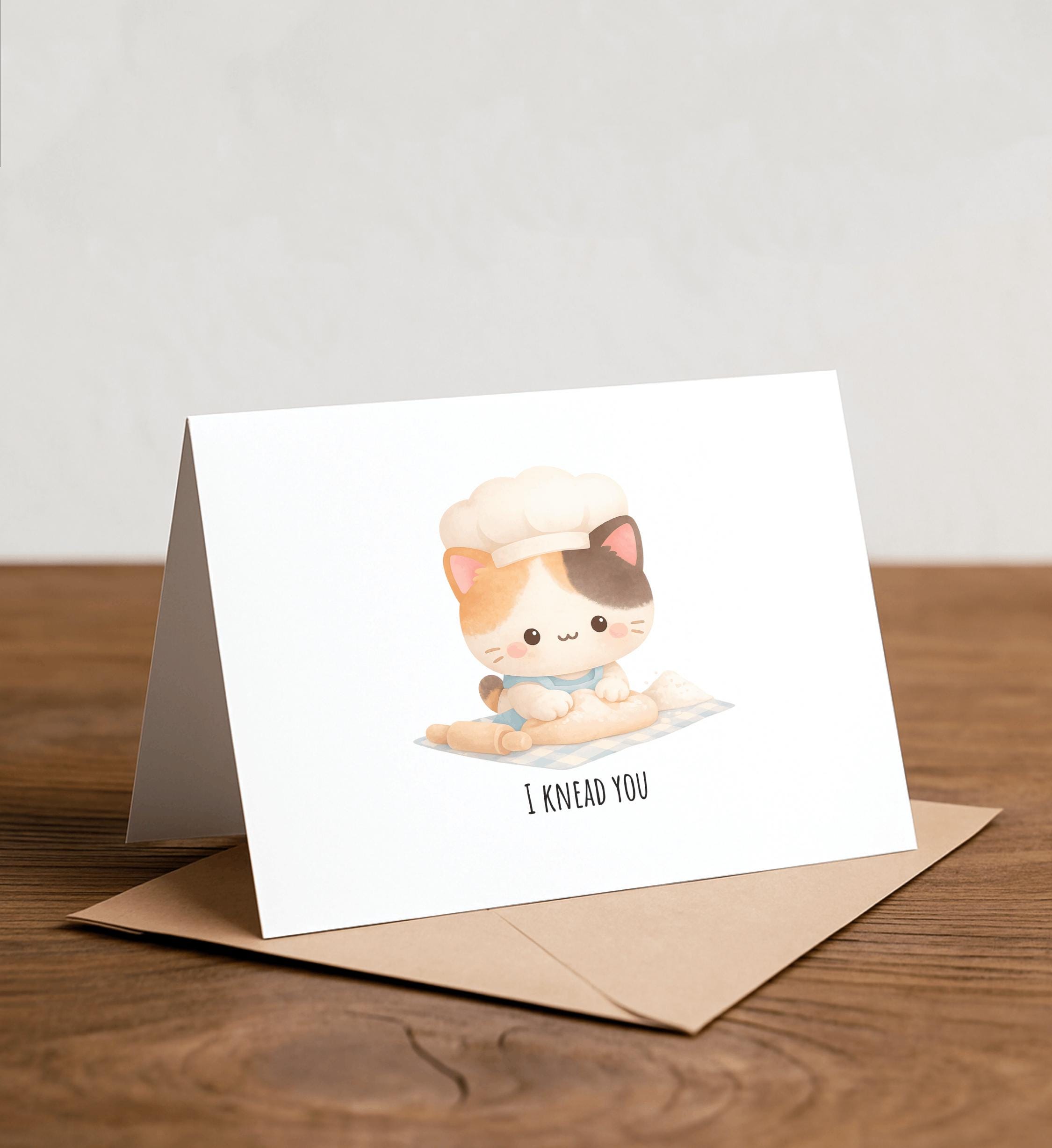 I KNEAD You Cat Card: Funny Birthday, Love Card