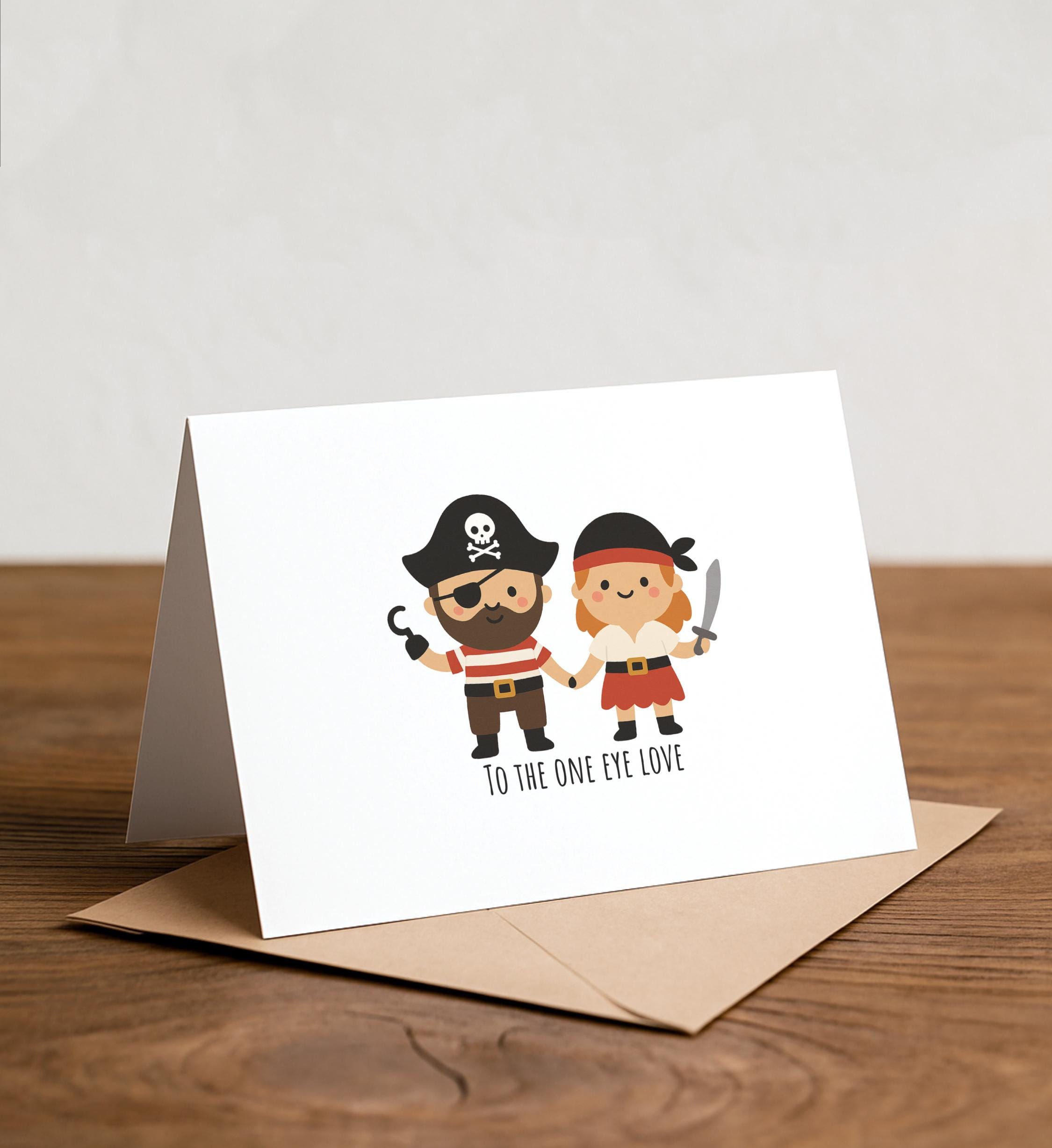 Funny Pirate Pun Card: One Eye Love - Handmade Valentine