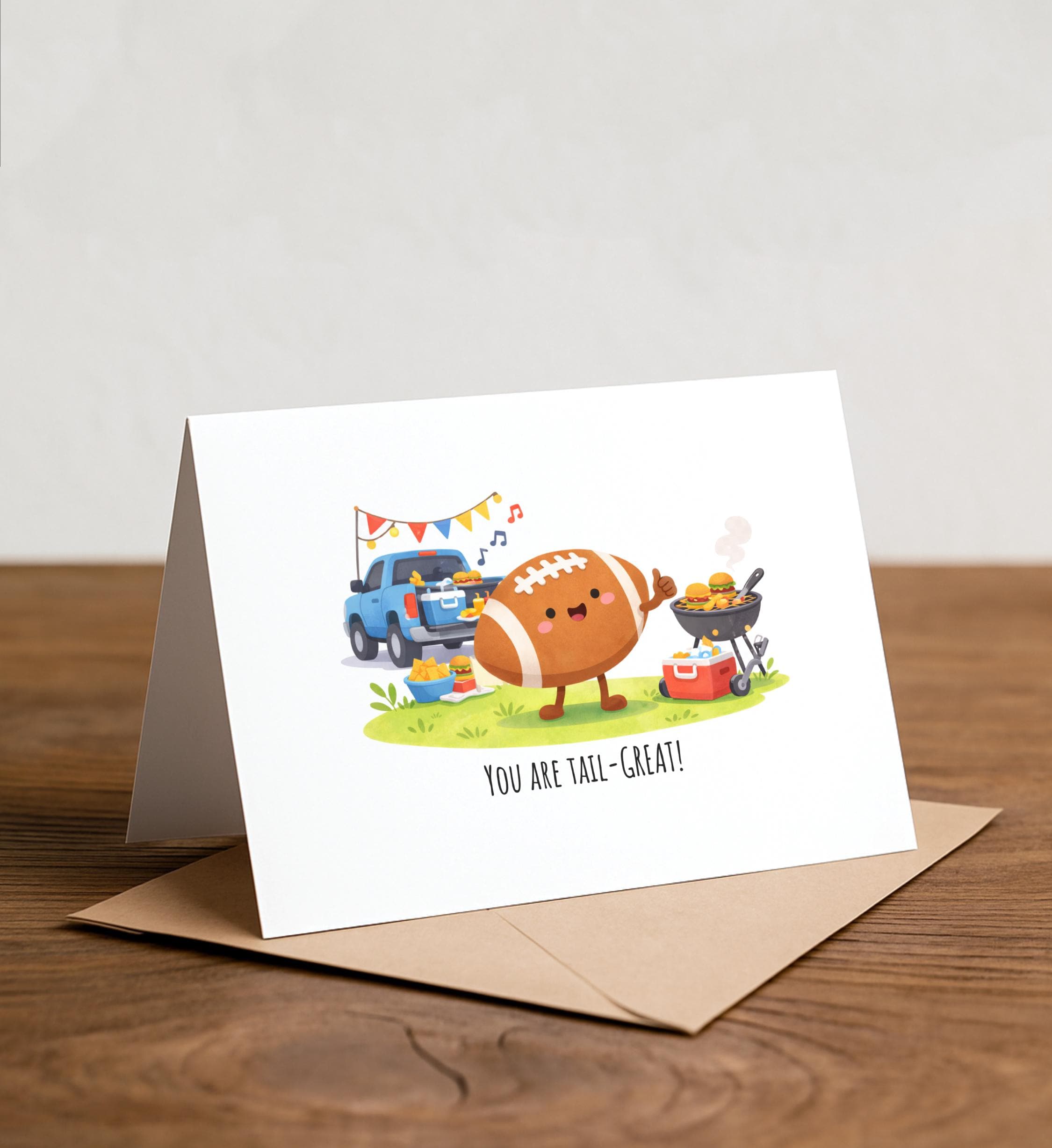You're TAIL-GREAT! - Football card, football, sports birthday card, catch, happy card, card for boyfriend, husband, touchdown, tailgate