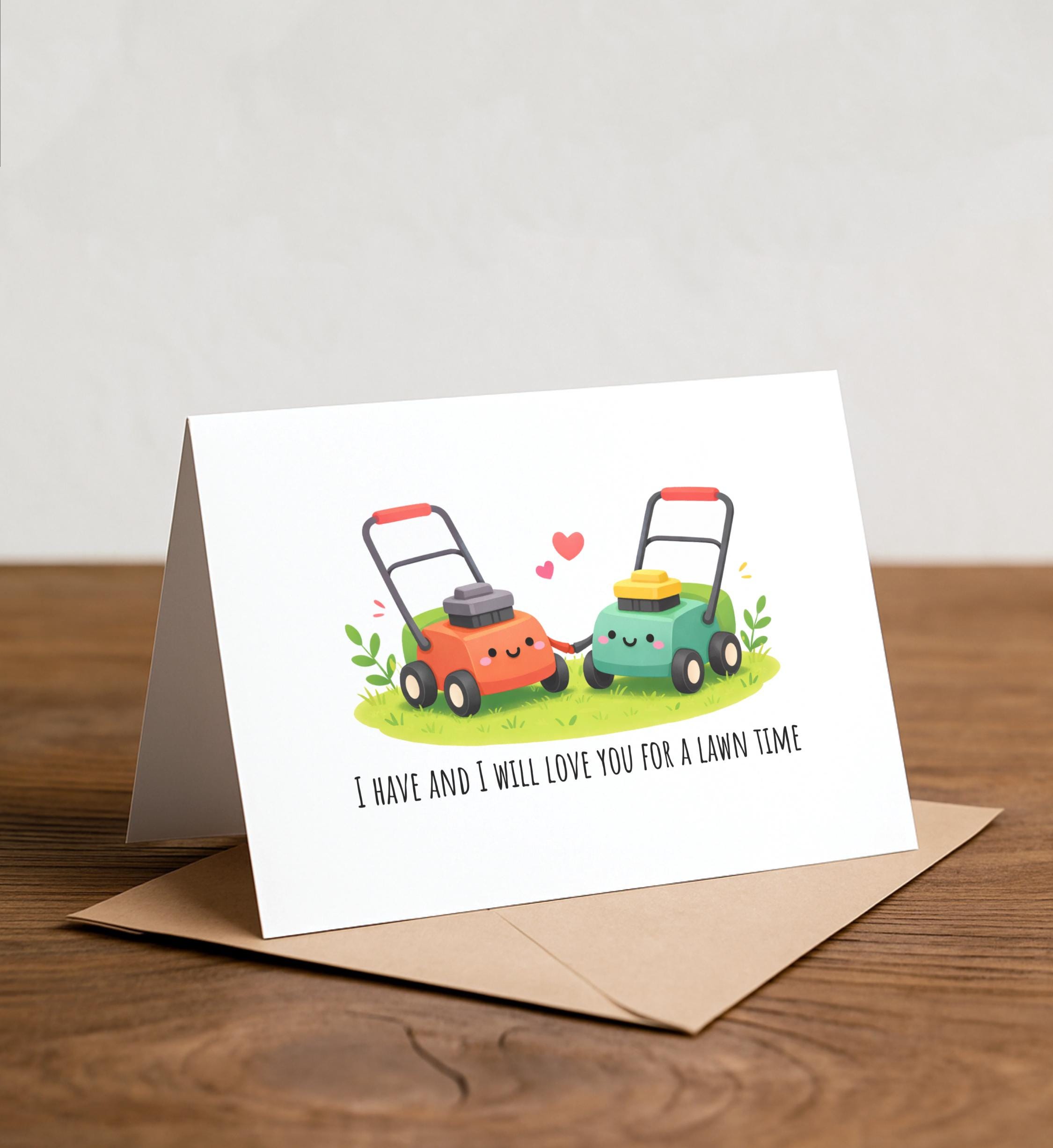 Funny Lawn Mower Pun Card - 'Love You Lawn Time'
