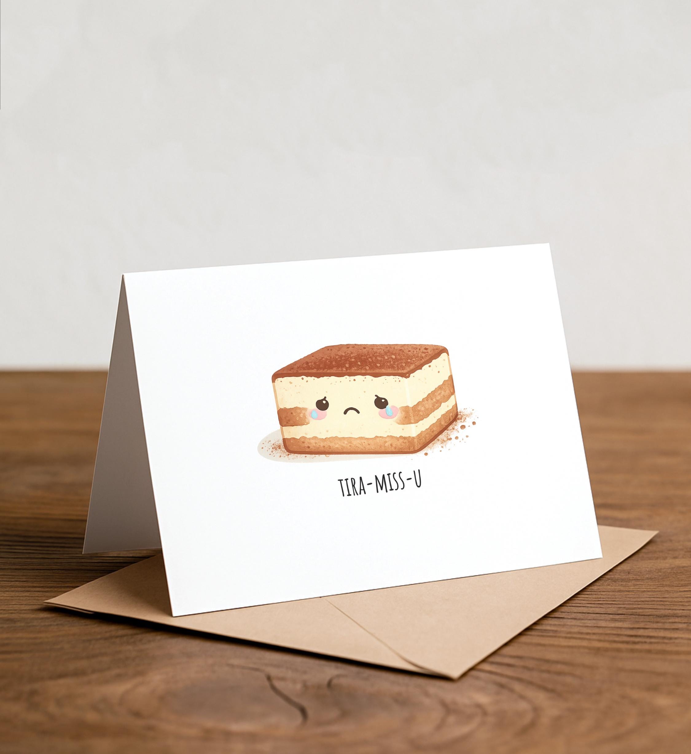 Tiramisu Pun Handmade Greeting Card: Missing You Card