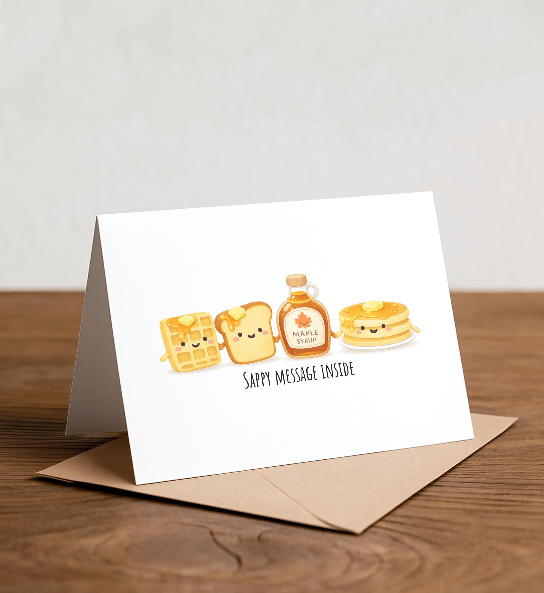 SAPPY message inside - waffle, pancakes, maple syrup, french toast, sappy, sad, happy, long card message