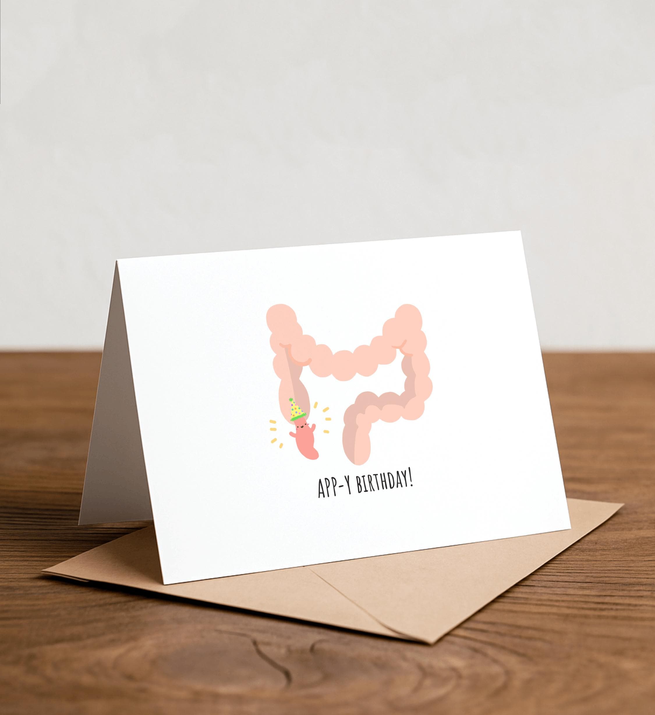 APPY birthday - appendix, birthday card, healthcare worker, doctor, nurse, PA, physician, surgeon, science, organ, biology card