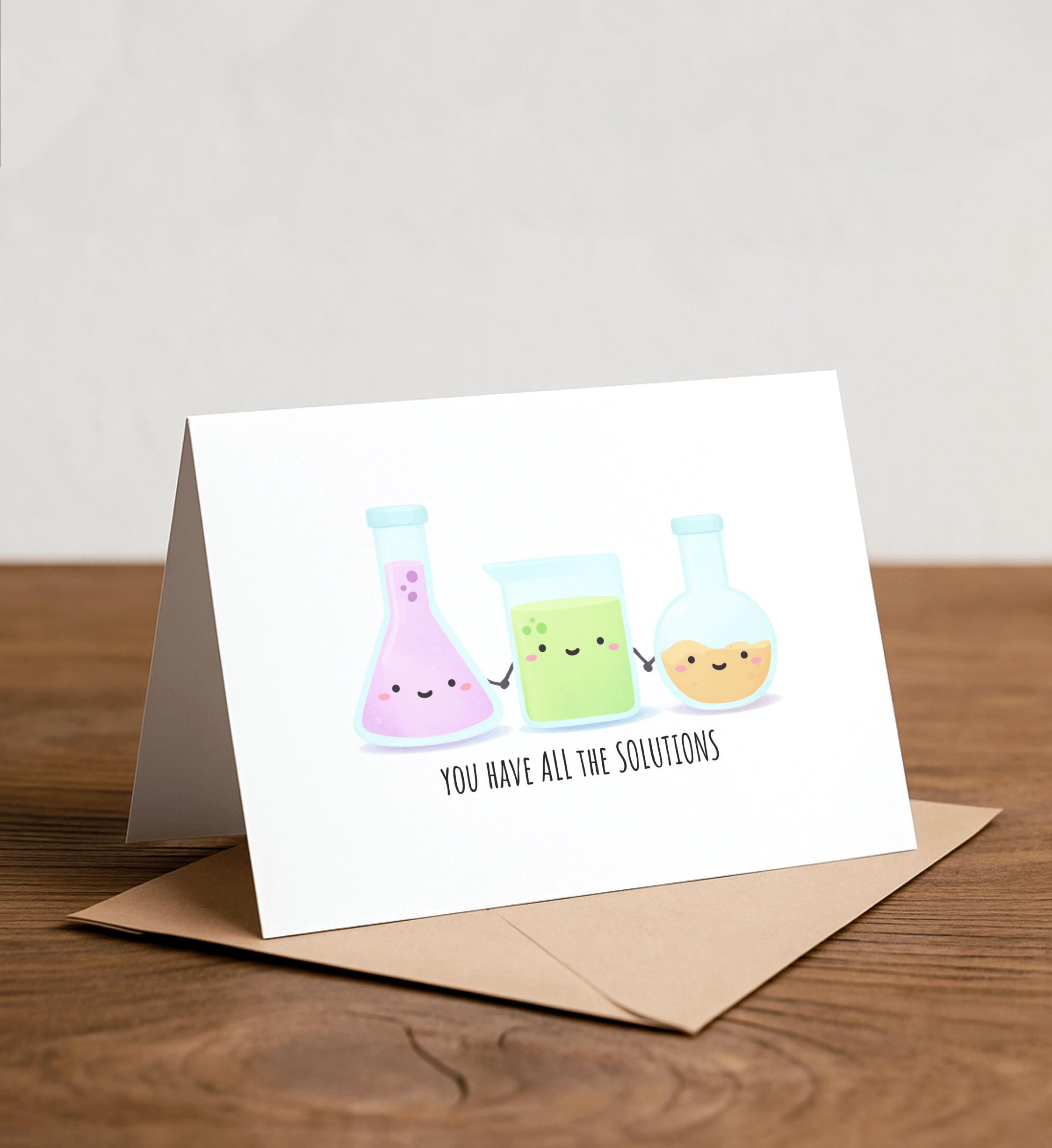You have all the SOLUTIONS - Periodic Table of Elements, Chemistry, Science pun, Science card, boyfriend, couple, girlfriend, anniversary