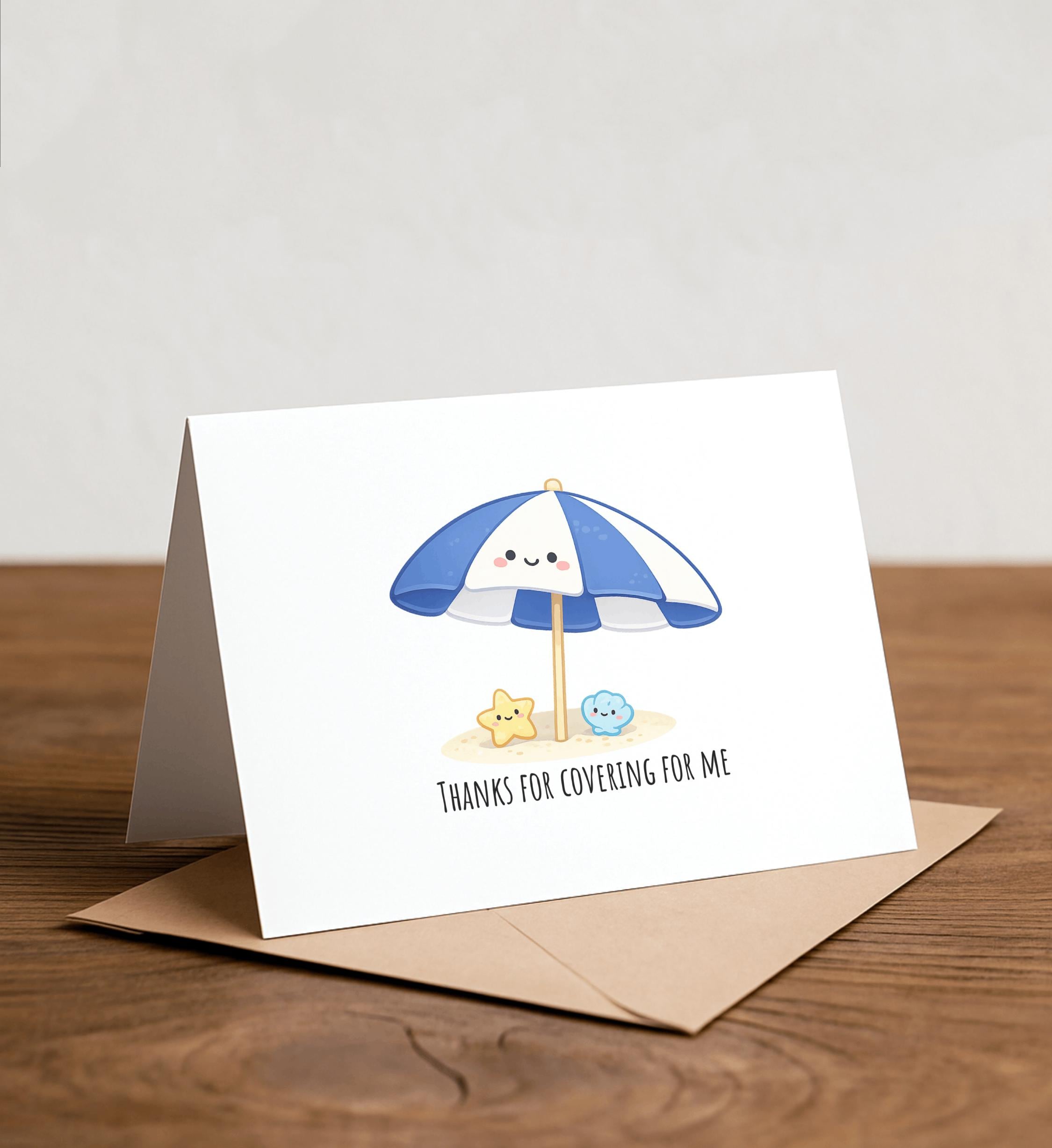 Thanks for Covering Card: Sunny Umbrella, Coworker Card, cover shift