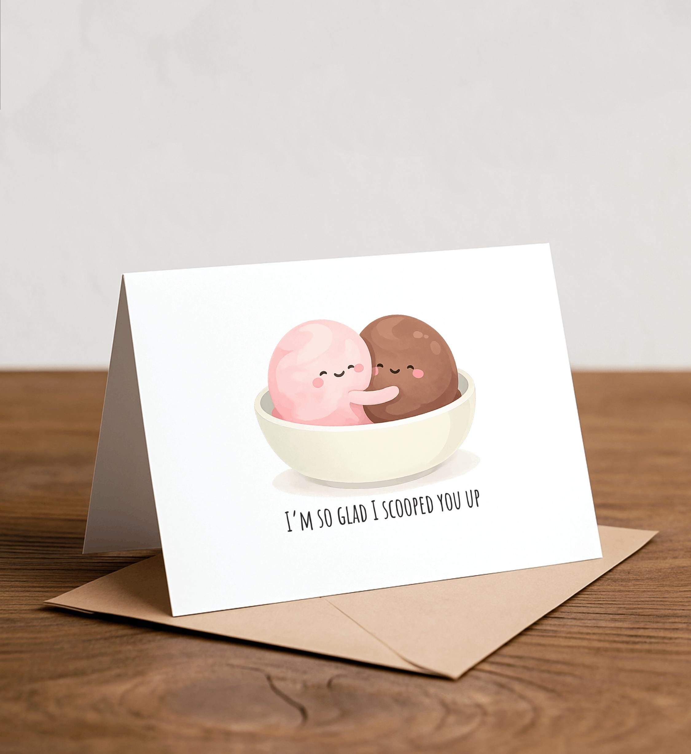 I’m so glad I scooped you up -- ice cream card, strawberry, chocolate, couples, wife, husband, girlfriend, boyfriend