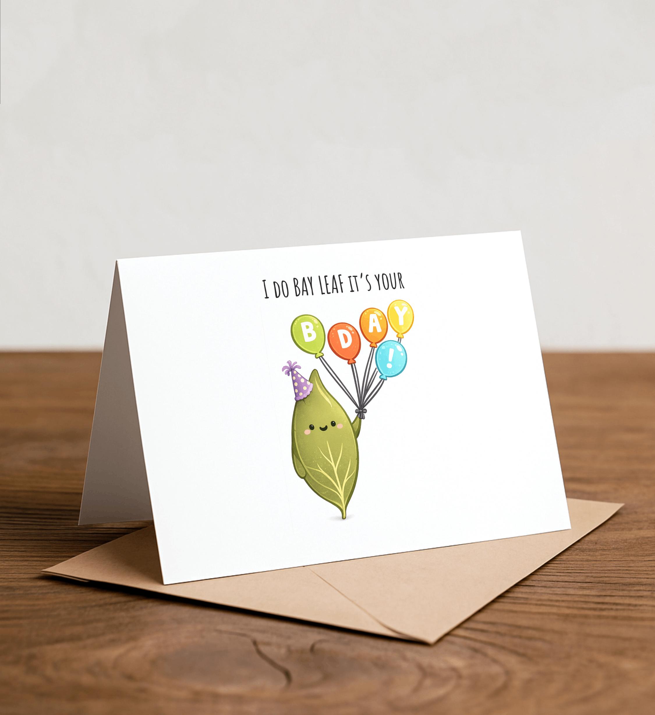 I do BAY LEAF it's your birthday - Bay Leaf Card, Funny birthday Card, Simple Card, card for chef, cooking