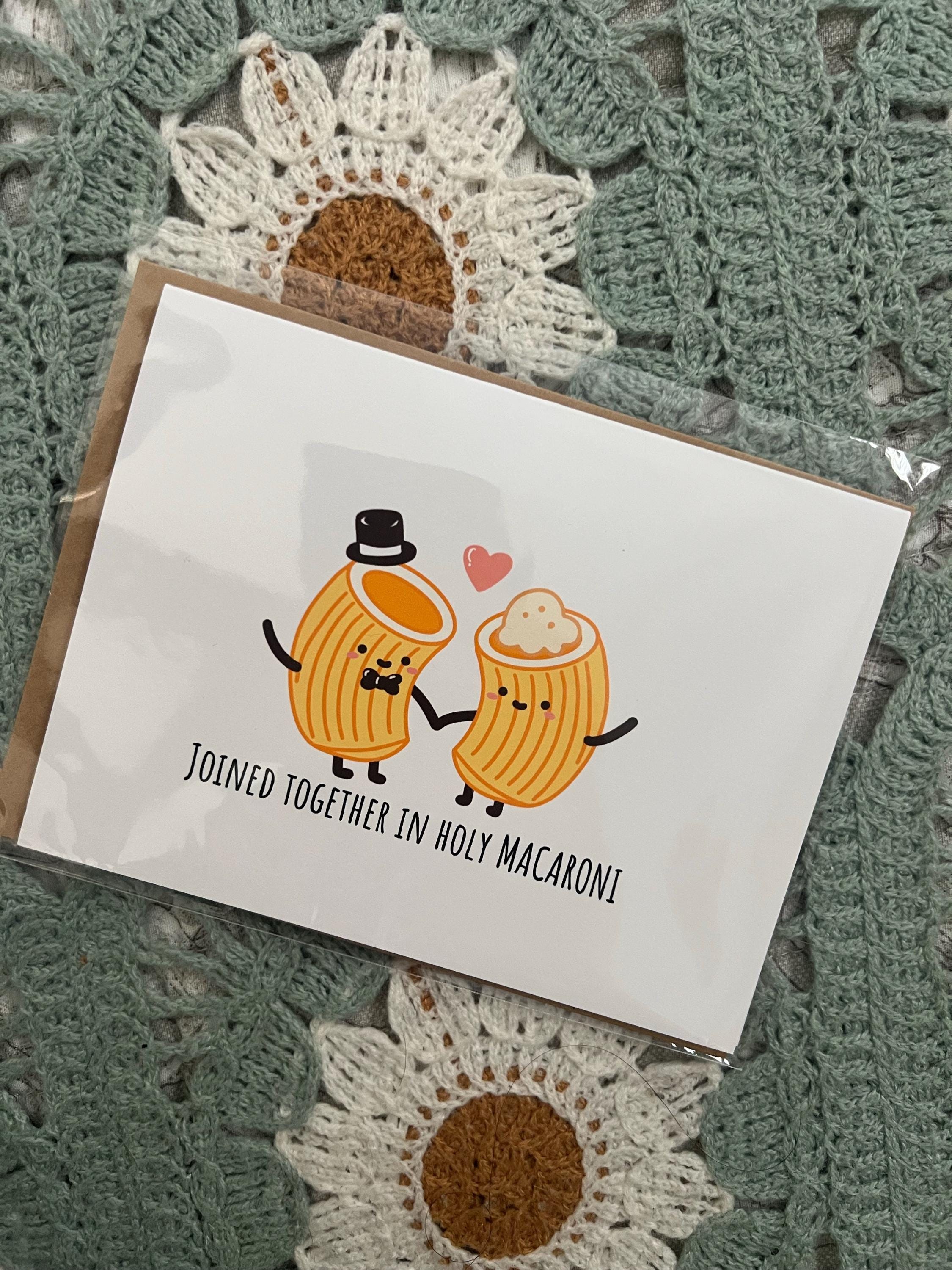 Joined together in holy MACARONI - Wedding Greeting Card, Bridal Shower Card, Pun Card, Punny Greeting Card, Wedding, Bridesmaid, Pasta