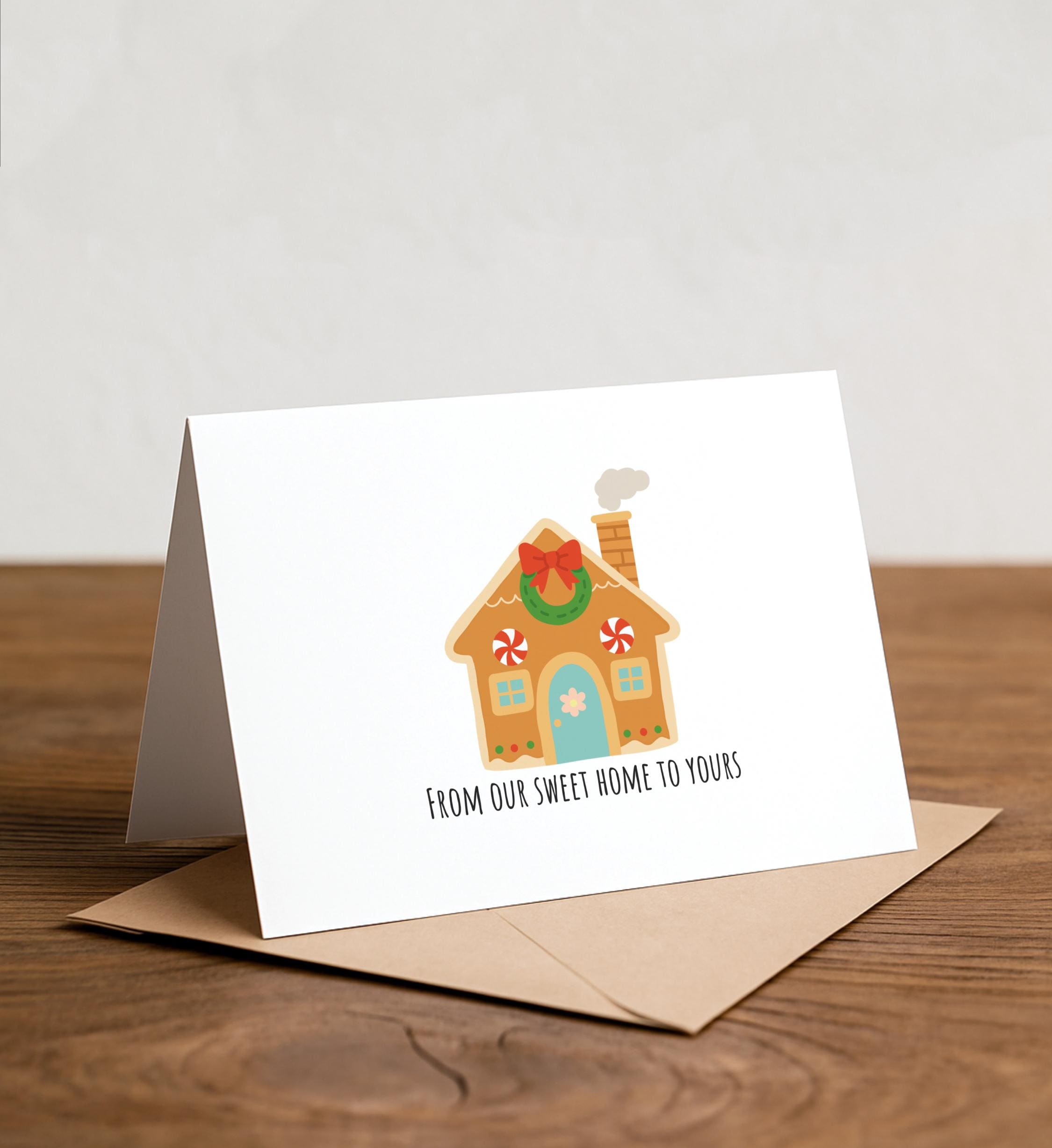 From our sweet home to yours - Gingerbread house, Cute Christmas Card, Funny Christmas Card, Simple Holiday Card, Punny Christmas Card, Holiday Pun