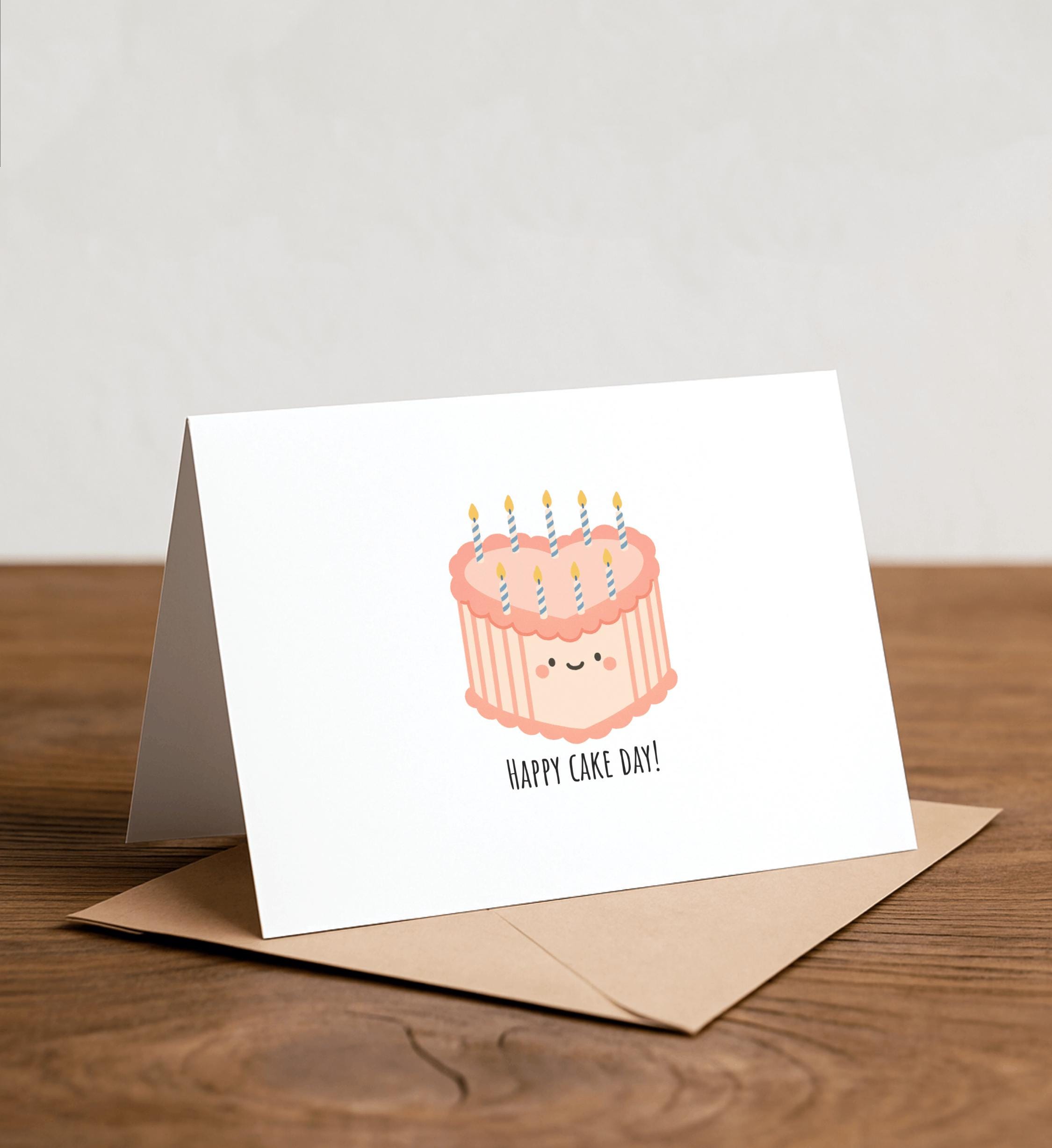 CAKE DAY! - Birthday Card, Funny birthday, cute cake, pink cake, vintage cake