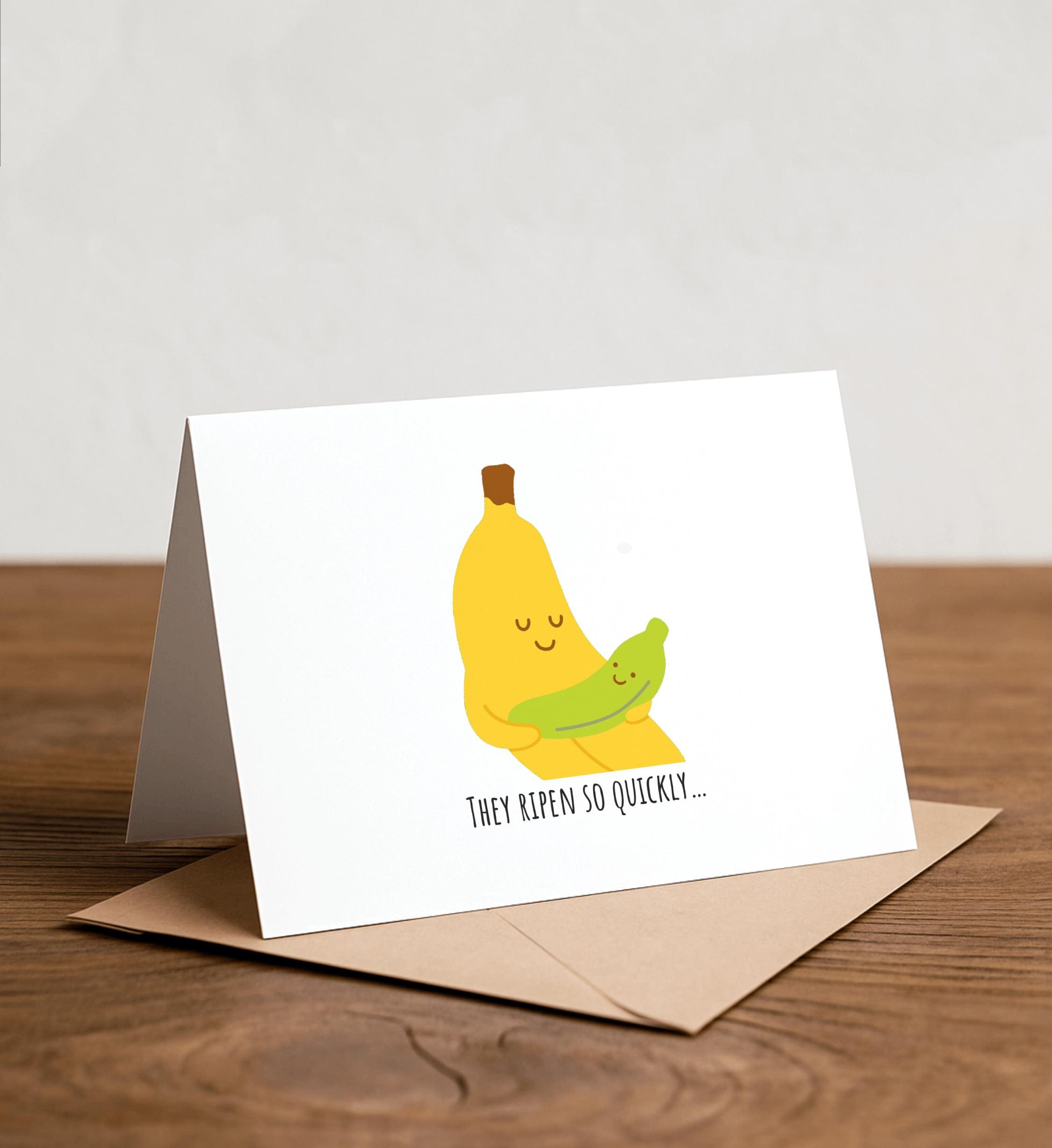 They ripen so quickly… - Baby shower Greeting Card, Love Card, Congrats, Expecting, Baby Shower, Pregnancy, Family, babies, kids, children