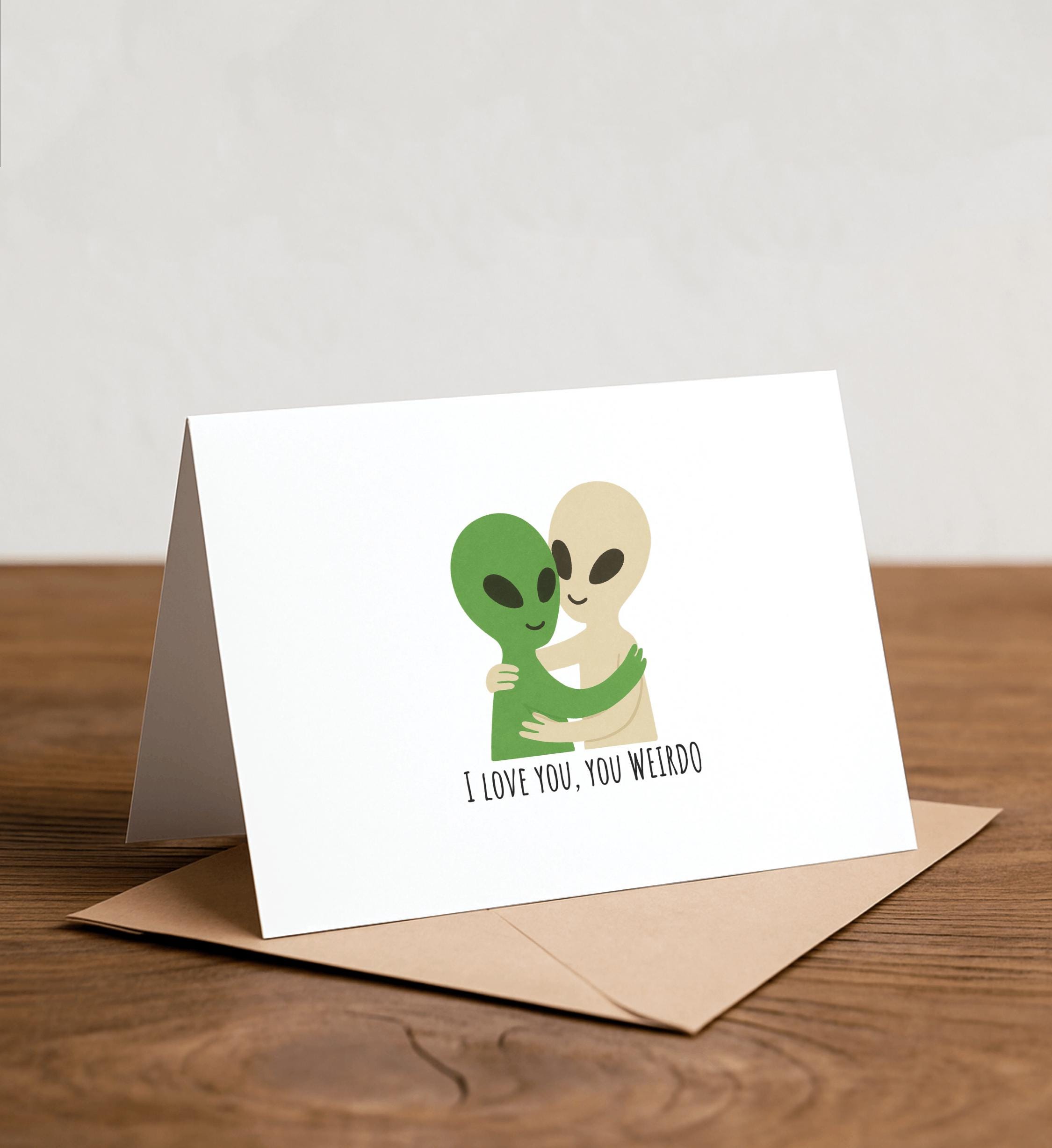 I love you, you WEIRDO - Alien Greeting Card, Note Card, Funny valentine, Funny card, love Card, Thank you card