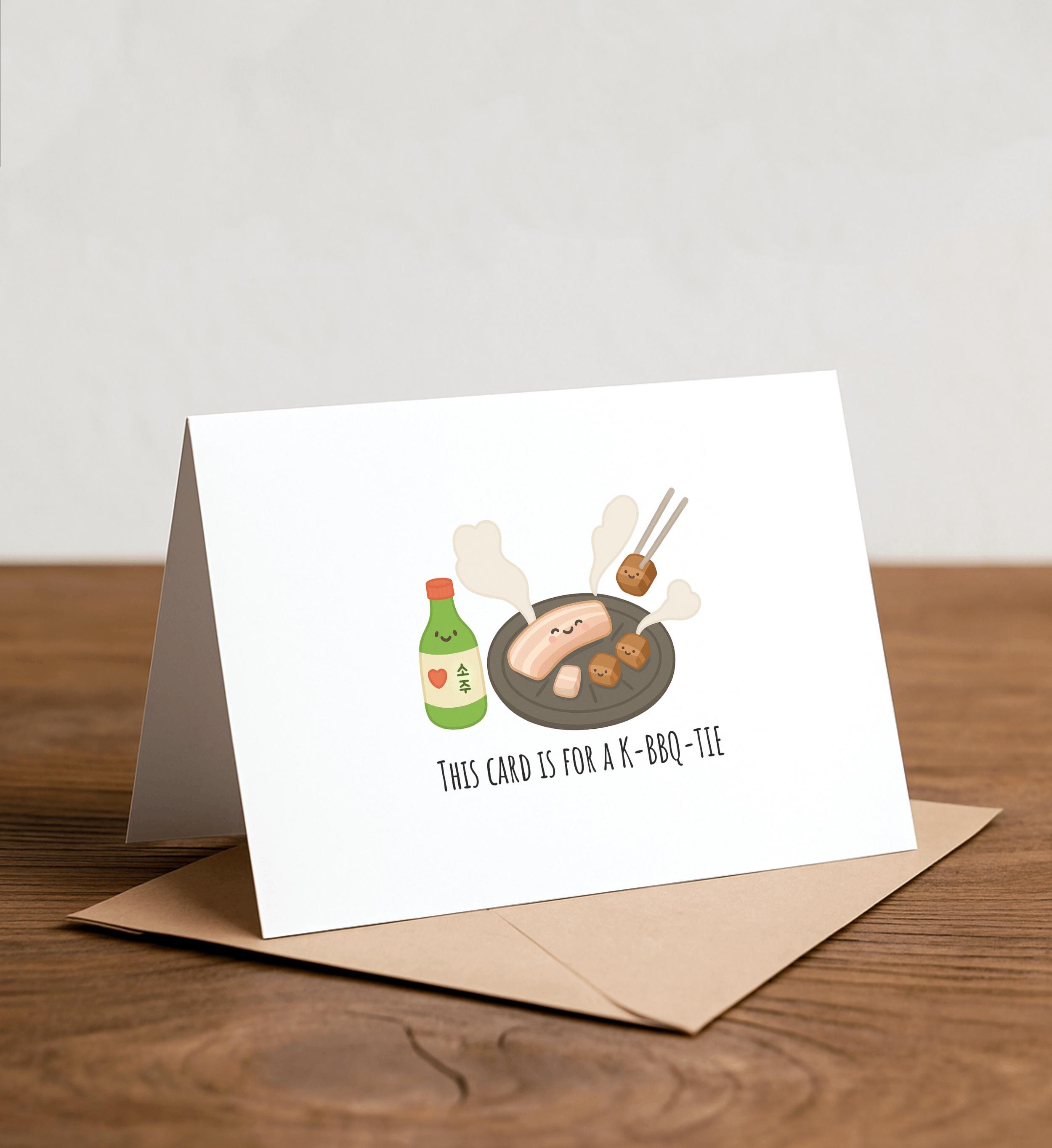 This card is for a K-BBQ-TIE - Birthday Card, Funny birthday, cute, funny, foodie, korean food, korean barbeque, kbbq, kpop, soju