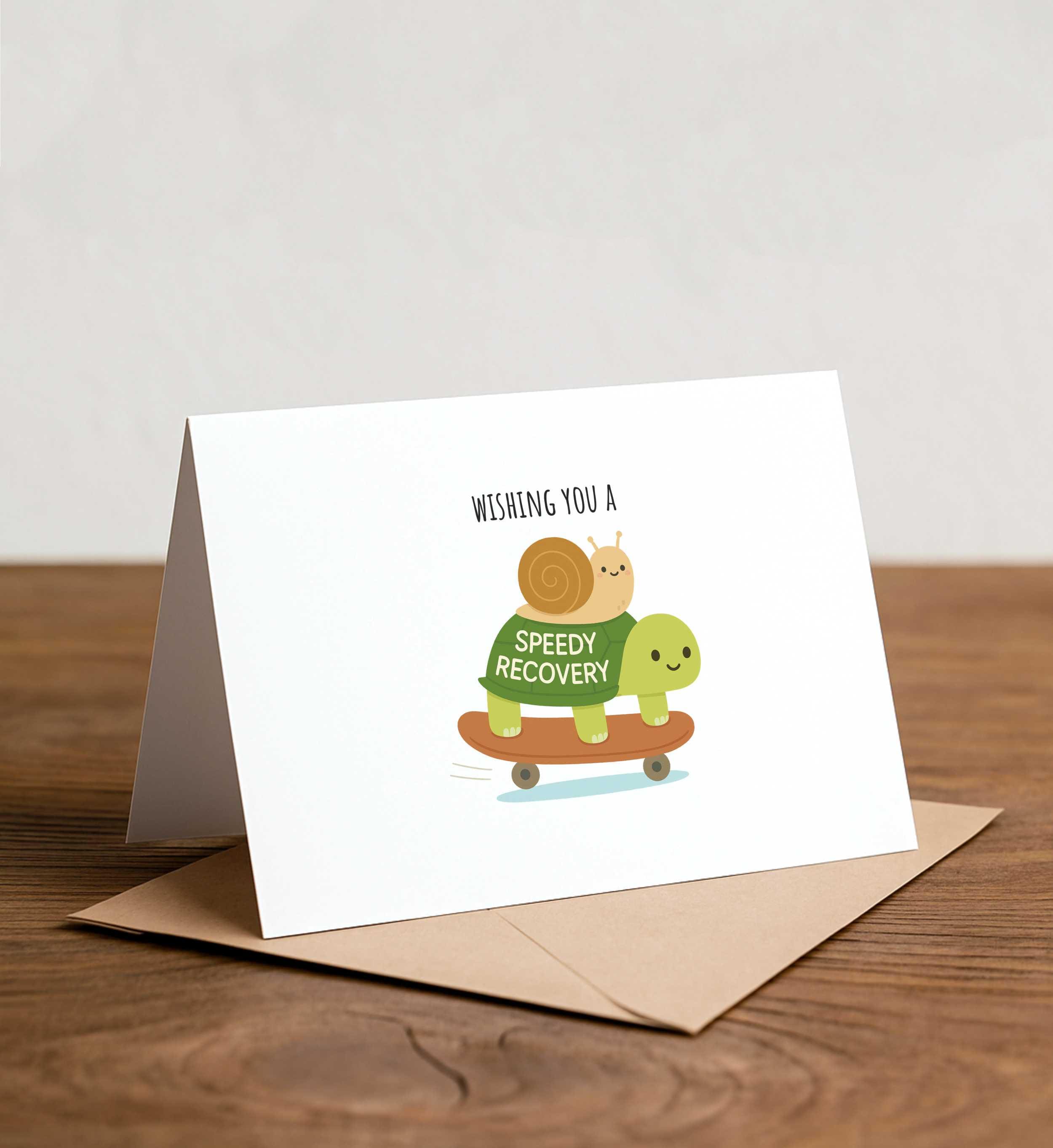 Speedy Recovery Card: Turtle & Snail Get Well Soon