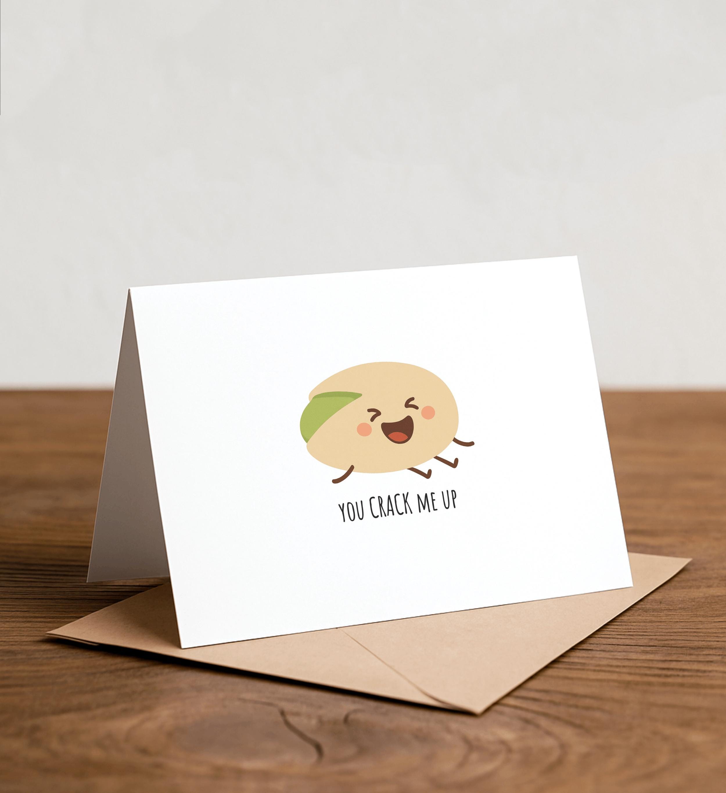 You CRACK me up - pistachio greeting card, love card, valentines day, card for friend, laughing, best friends