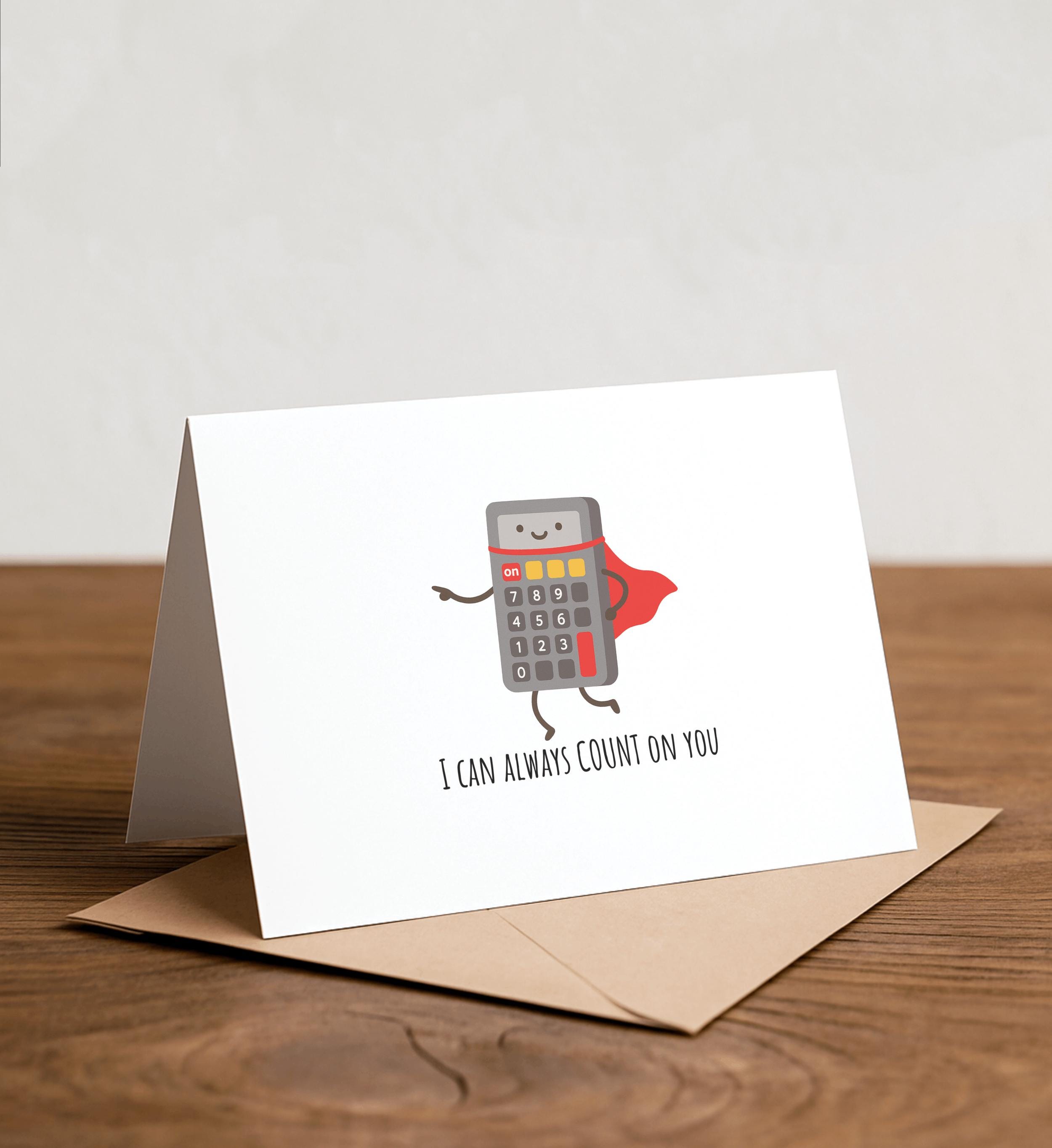 I can always COUNT on you - Calculator Greeting Card, Funny Birthday Card, Dad joke card, Handmade Card, Punny Greeting Card, Dad, super