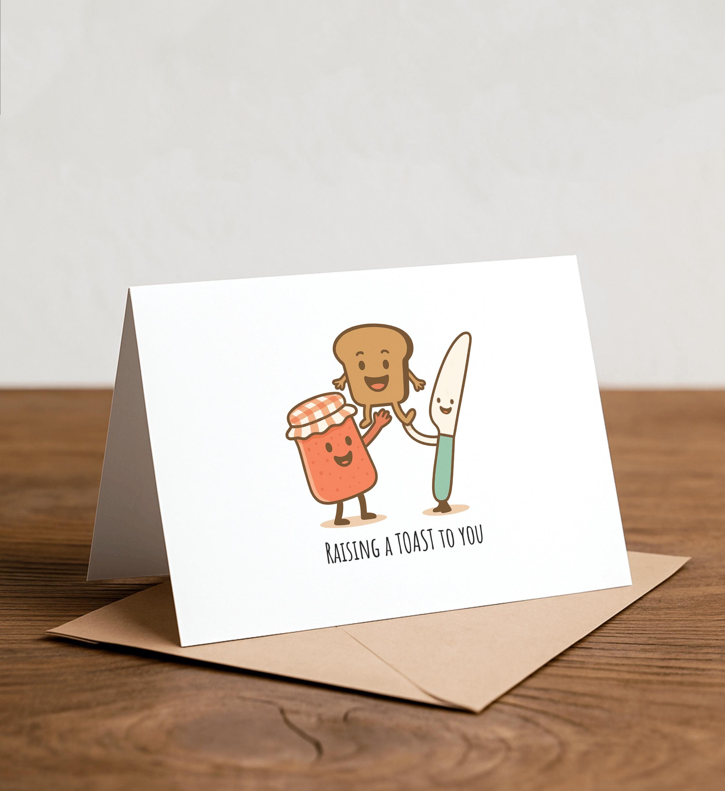 Raising a toast to you - Toast Greeting Card, Note Card, Funny valentine, Funny card, love Card, Thank you card, jam, toast, brunch