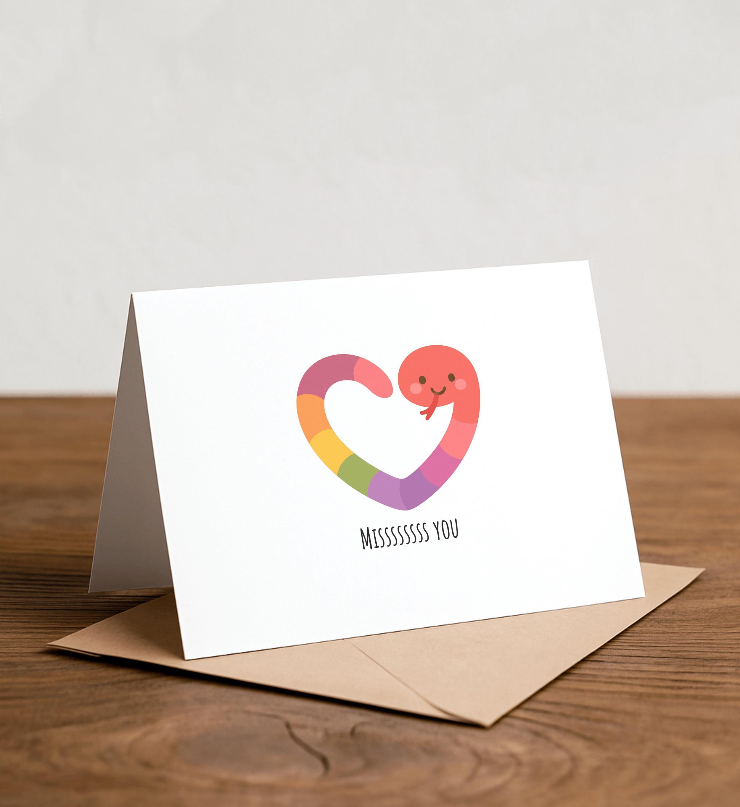 MISS you - Miss You Greeting Card, Note Card, Funny valentine, Thank you card, dad joke, long distance relationship, love, cute snake