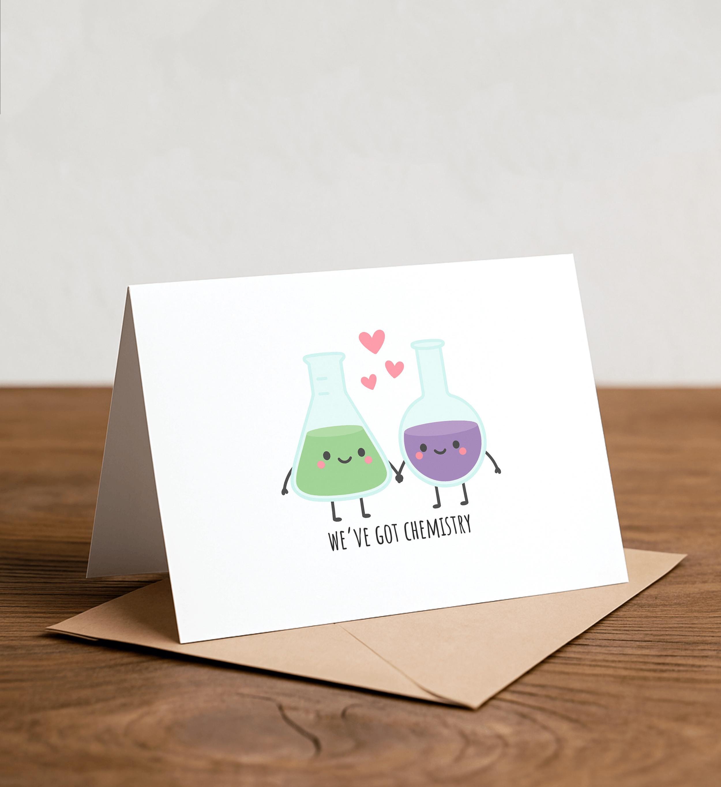 we’ve got chemistry - Science Beaker Greeting Card, Love Card, Sweet gift, pun card, valentines, birthday, chemistry, scientist, research