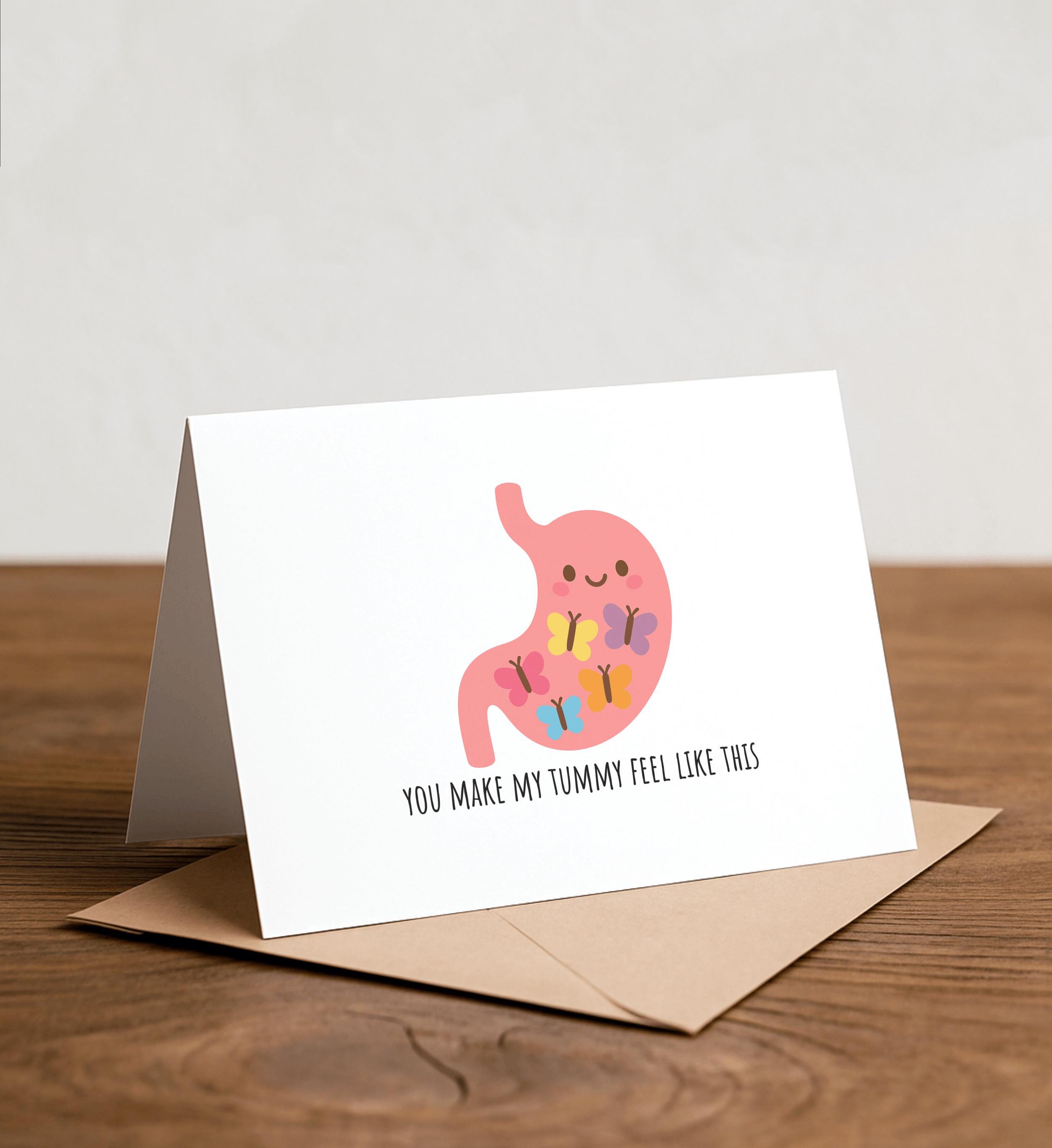 you make my tummy feel like this - pun card, punny, dad joke, valentines, anniversary, butterflies, stomach