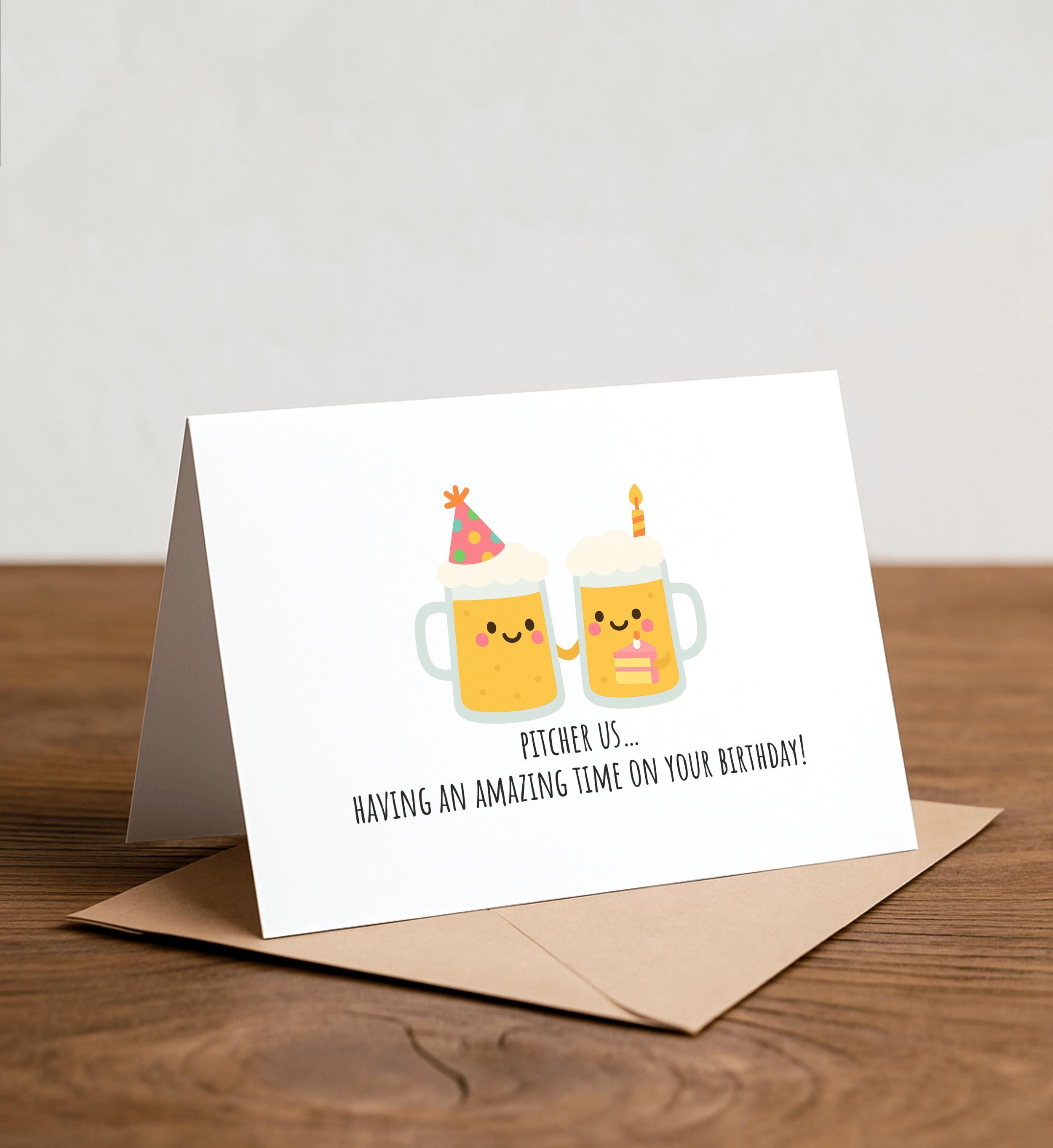 pitcher us… having an amazing time on your birthday! - Beer Greeting Card, Note Card, Funny birthday