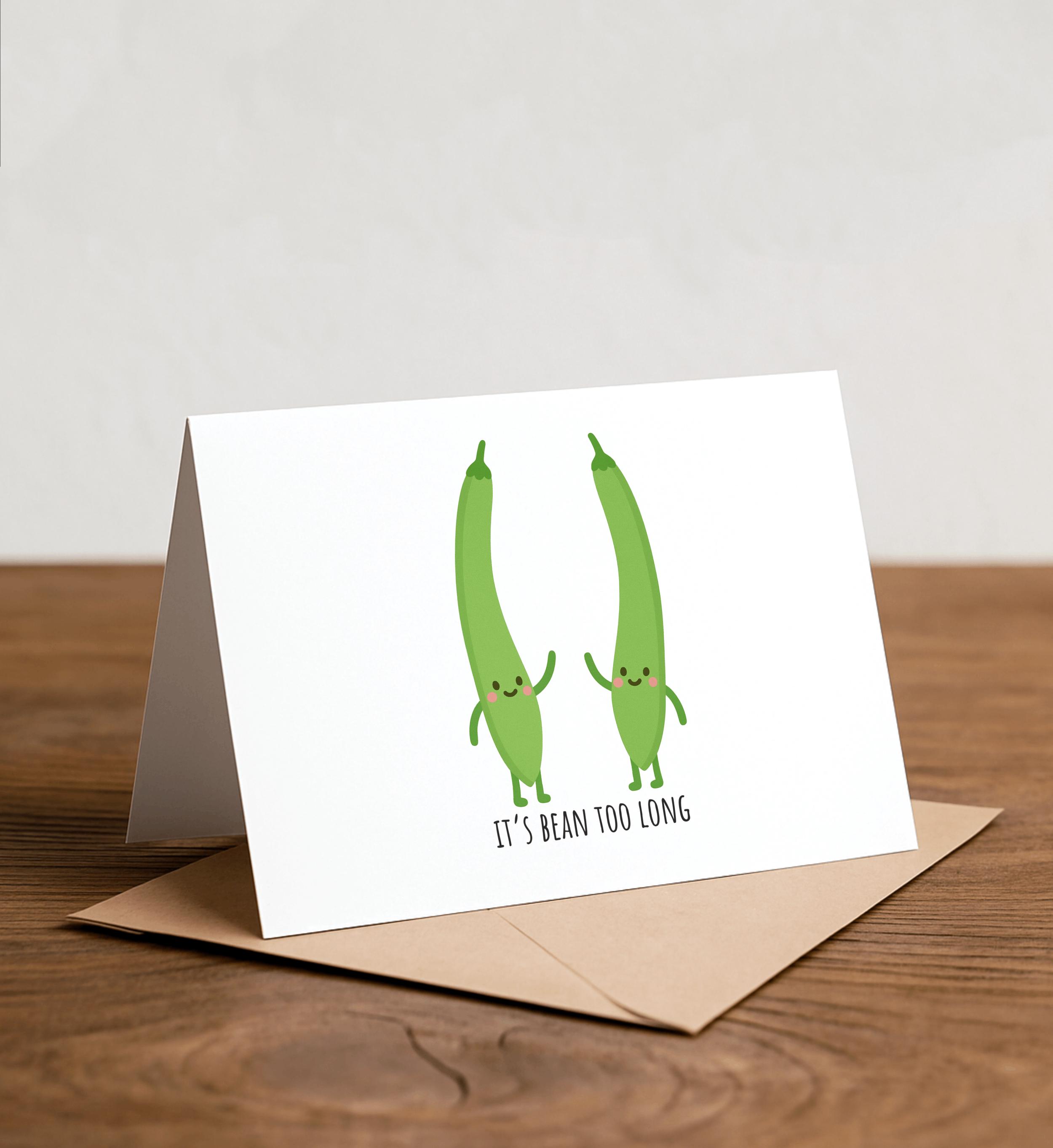 It's BEAN too long - back to school, coworker, office, teacher card, thank you card, green bean, vegan, vegetable, veggie card