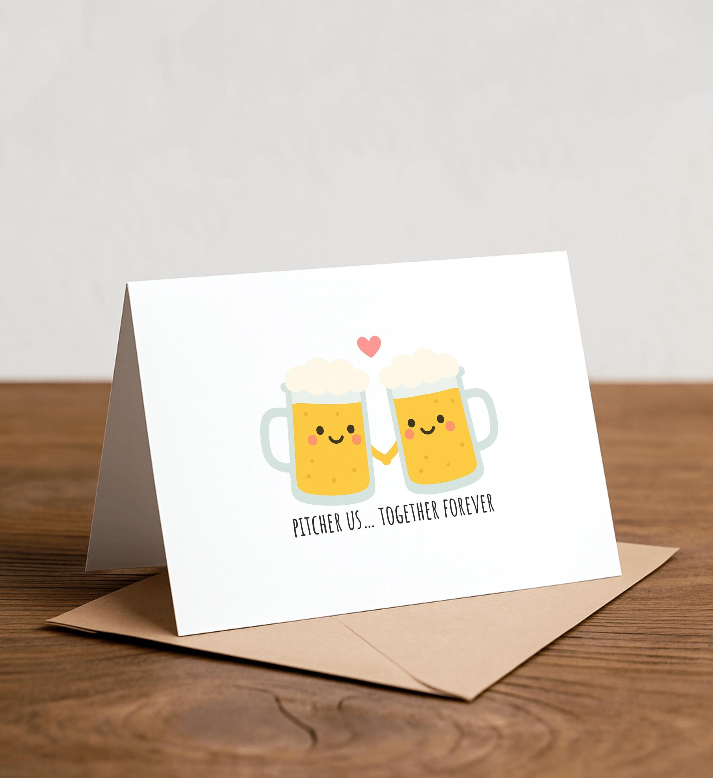 Beer Pitcher Anniversary Card: 'Pitcher Us Together' Handmade