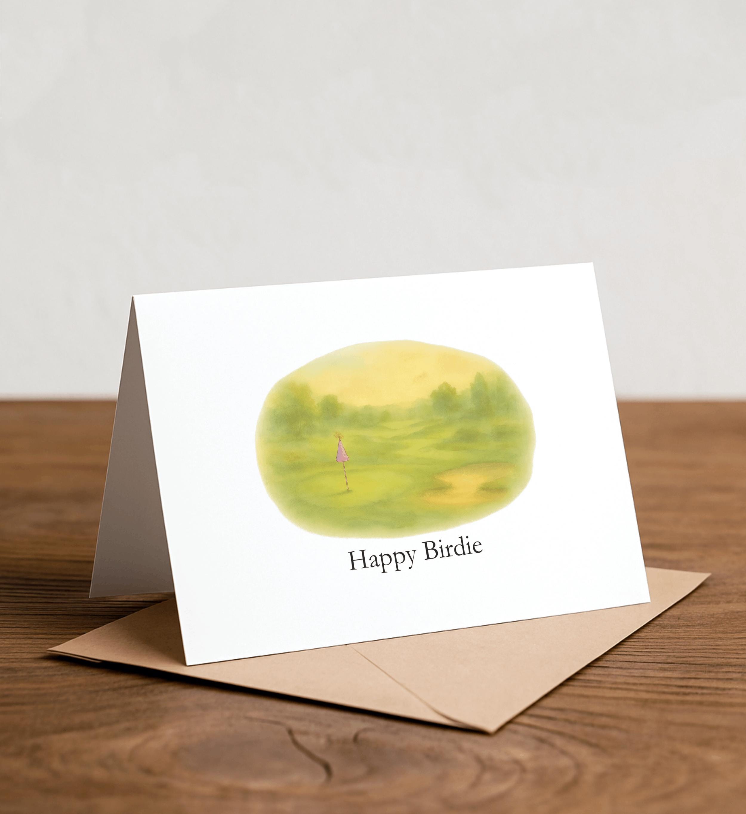 Funny Golf Birthday Card: Happy Birdie Pun, Handmade, Watercolor