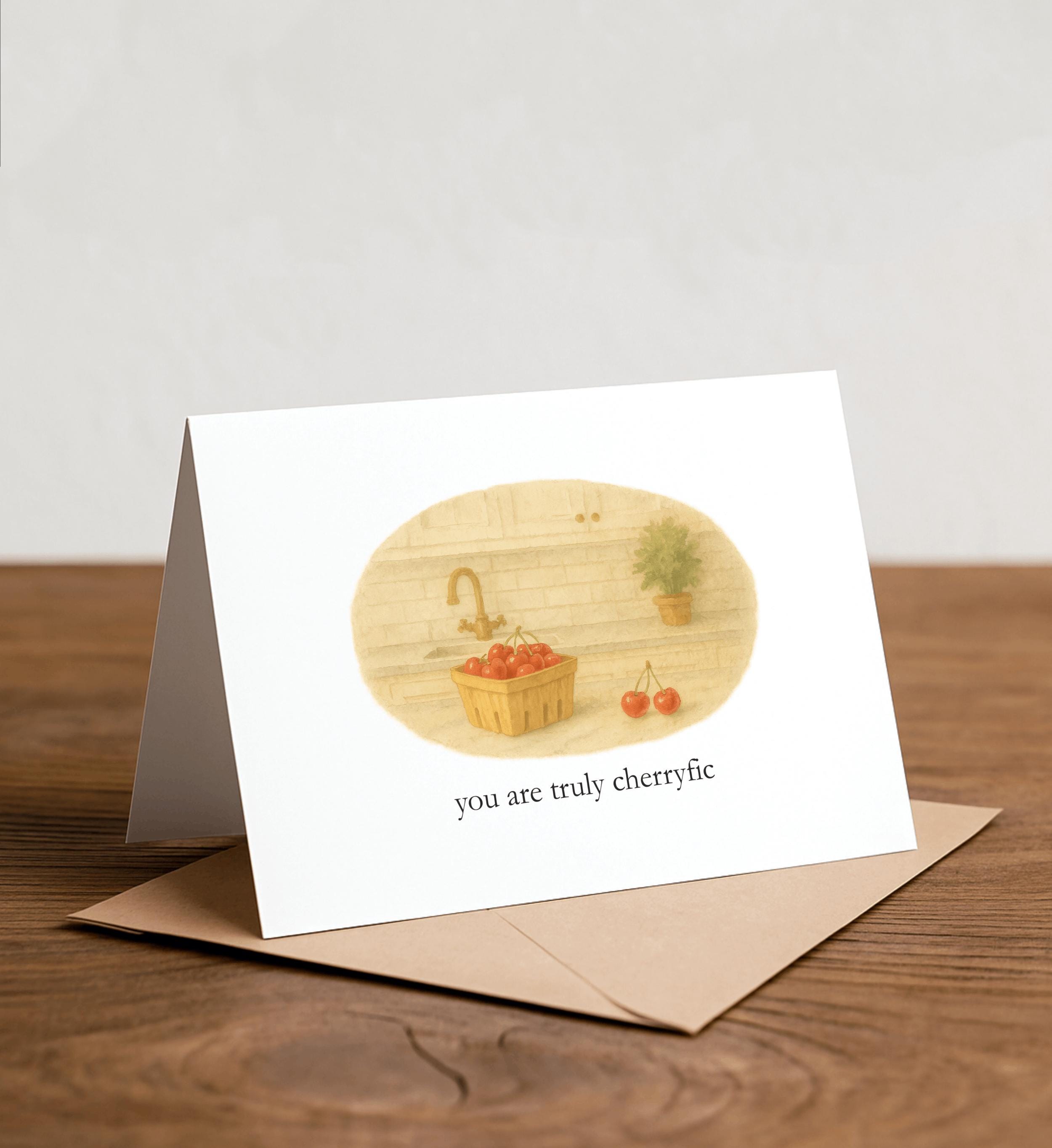 Card is printed on premium cardstock and comes with a kraft envelope and sticker.