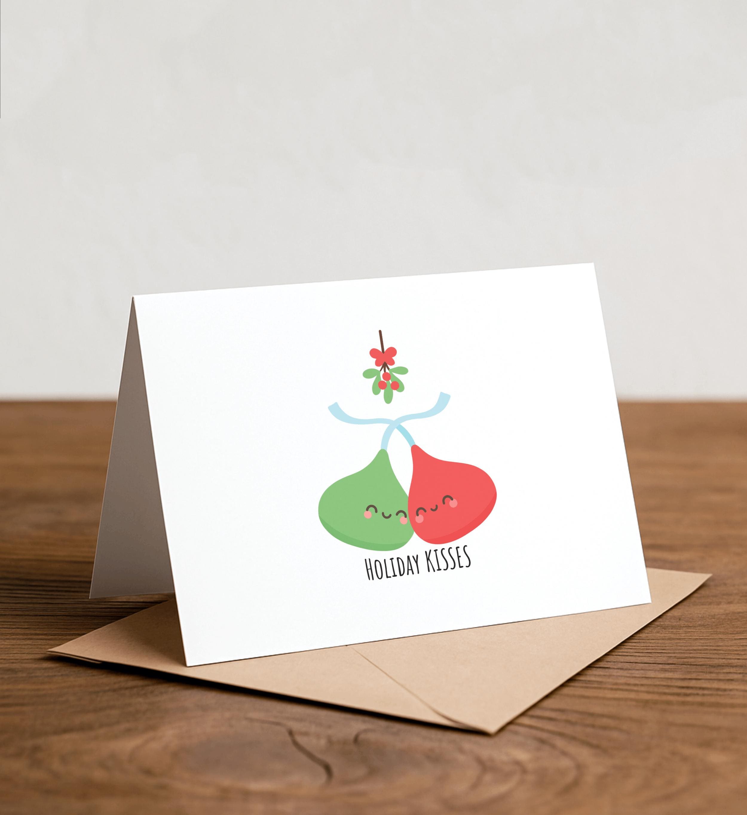 Holiday Kisses Christmas Card: Funny Pun Handmade Card
