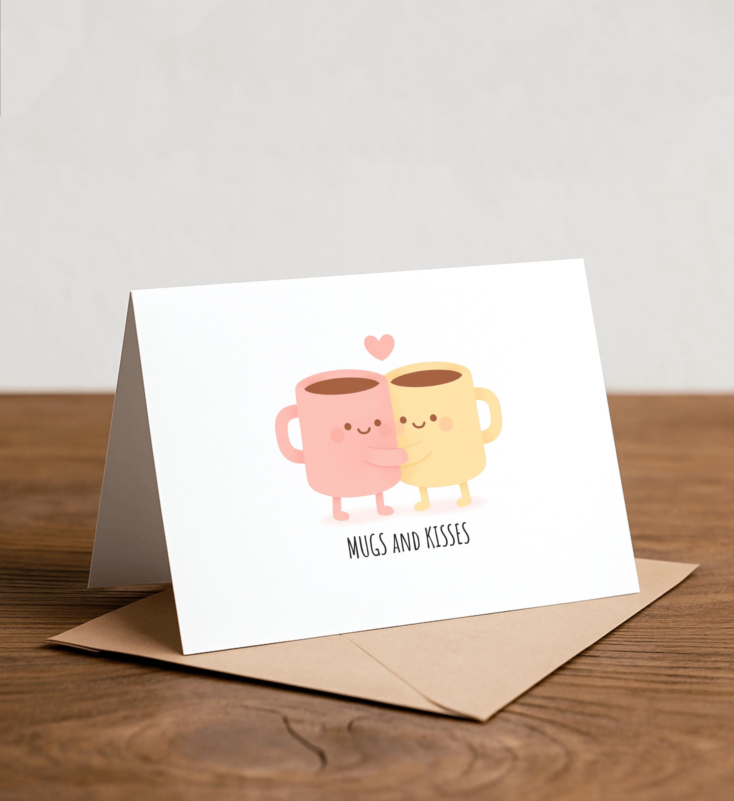MUGS and KISSES: Handmade Thank You Card, Love Card