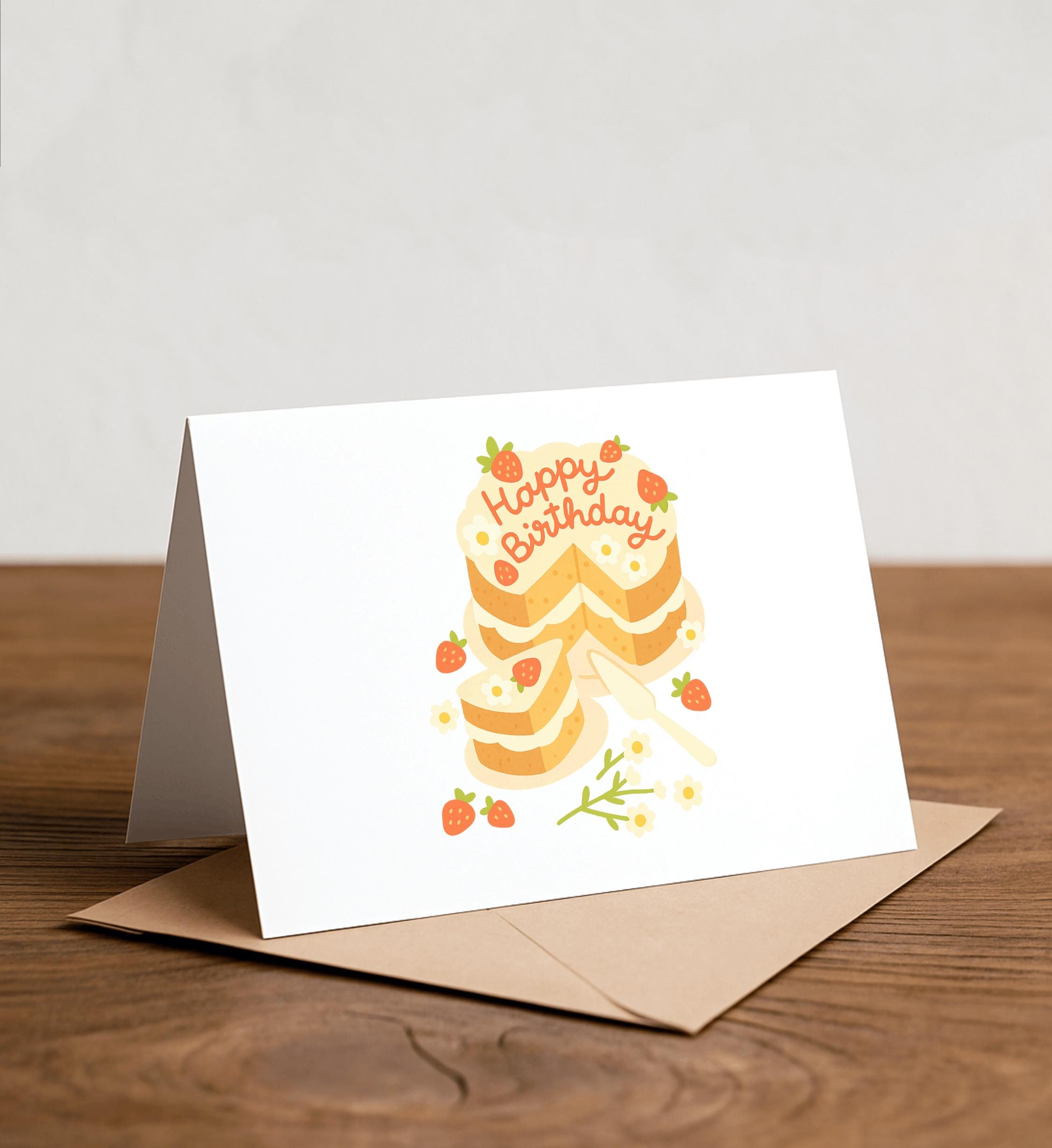 Strawberry Vanilla Cake Birthday Card - Handmade A2 Card