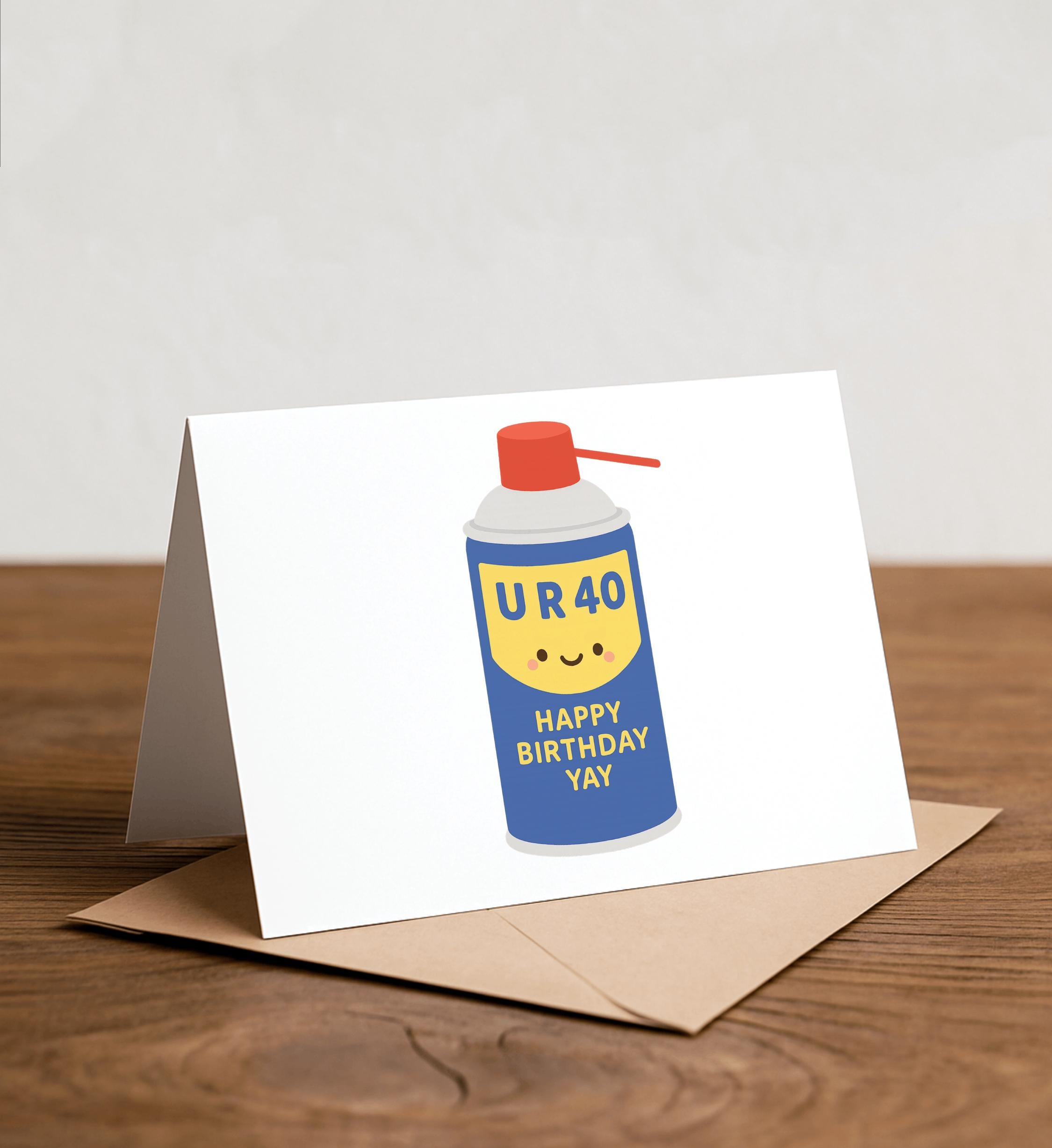 WD40 Birthday Card – UR40 - 40th birthday, Kraft Envelope, tools, fixing
